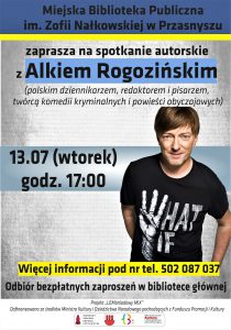 Miejska Biblioteka Publiczna im. Zofii Nałkowskiej w Przasnyszu zaprasza 13 lipca (wtorek) o godz. 17:00 na spotkanie autorskie z Alkiem Rogozińskim.