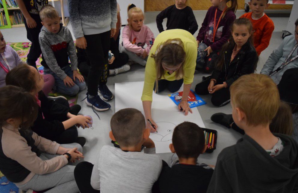 Klasę I „A” wzięła udział w spotkaniu autorskim z Joanną Strękowską, autorką książki dla dzieci „Czerwony kłopot”.