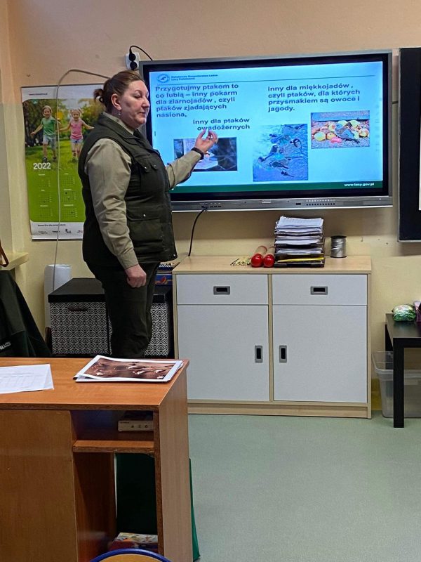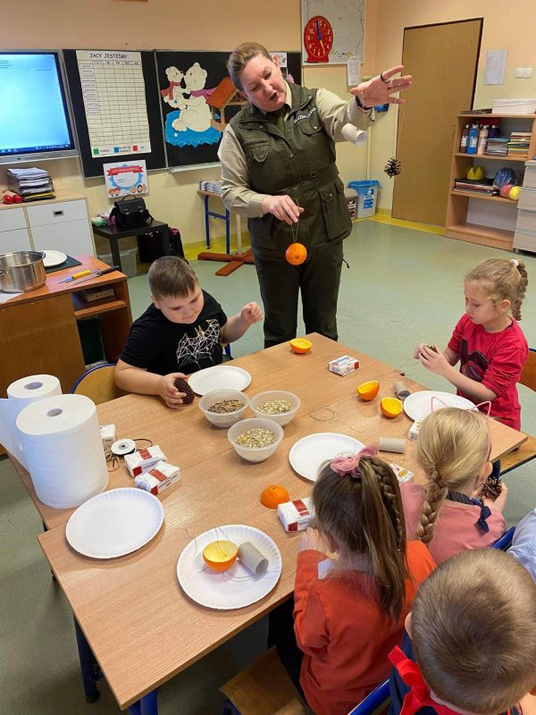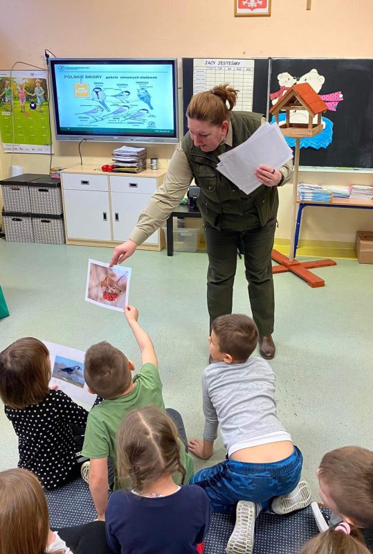 „Pomagamy ptakom przetrwać zimę” to temat zajęć edukacyjnych przeprowadzonych przez Panią leśnik pracującą w Nadleśnictwie Przasnysz, która odwiedziła dzieci z oddziałów przedszkolnych Szkoły Podstawowej nr 1 z Oddziałami Integracyjnymi w Przasnyszu.