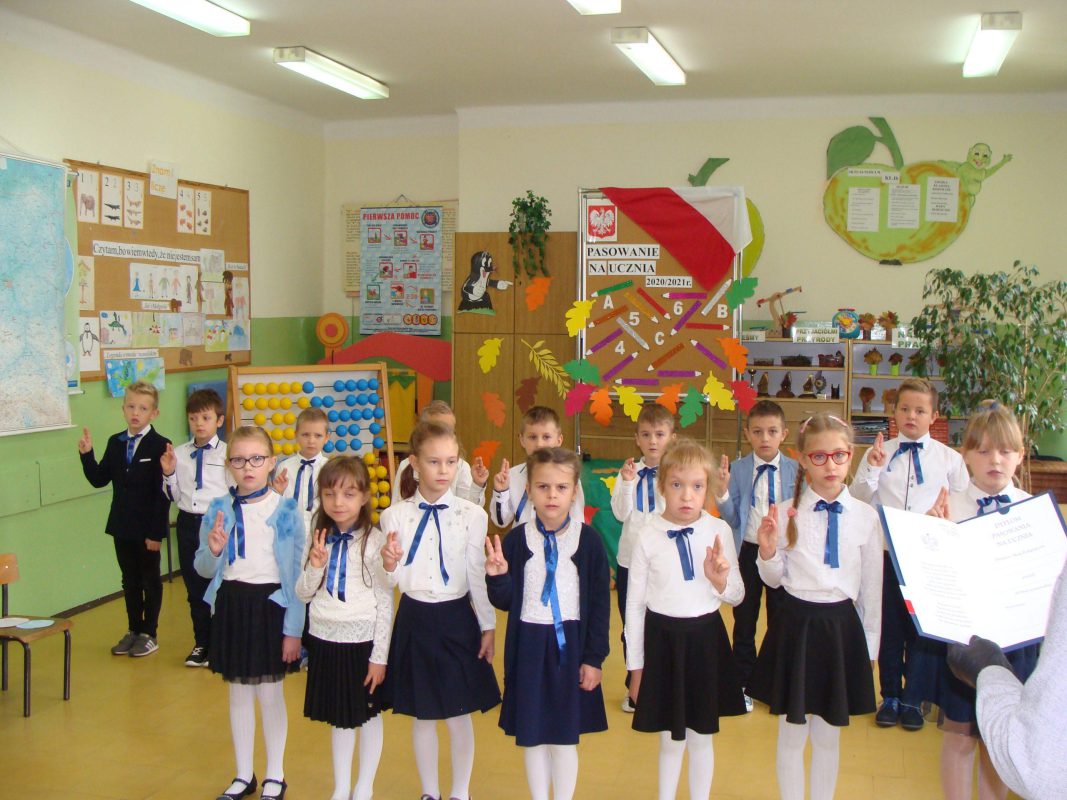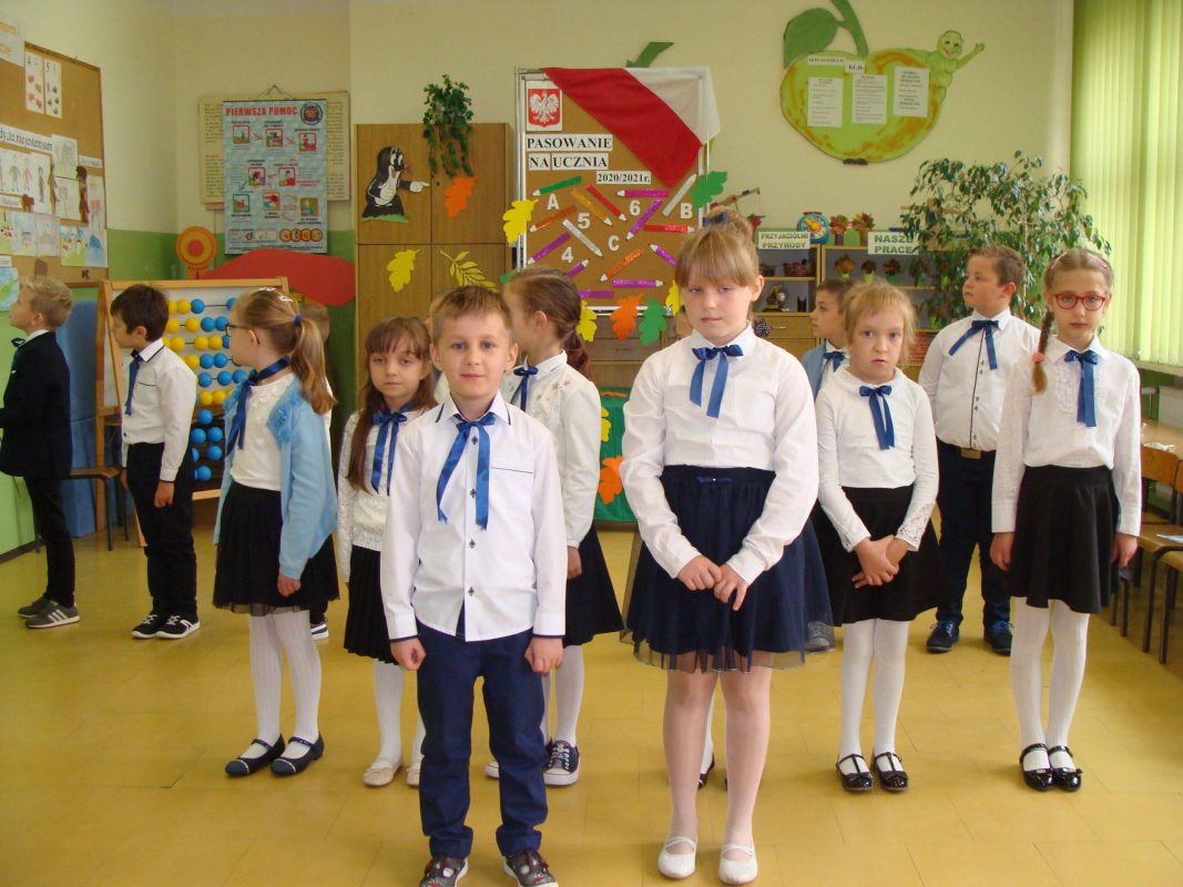 Z powodu sytuacji epidemiologicznej w wydarzeniu nie mogli uczestniczyć rodzice ani inni goście. Jednakże wszyscy pamiętali o naszych najmłodszych uczniach i przygotowali dla nich pamiątki tego wydarzenia. Wychowawczynie wraz z uczniami serdecznie dziękują za pamięć i zaangażowanie dyrekcji szkoły, wójtowi – Jerzemu Humięckiemu, Przewodniczącej Rady Rodziców – Beacie Kuklińskiej, Rodzicom uczniów, Samorządowi Szkolnemu, wychowawczyniom kl, I – III, Paniom: Agnieszce Szemplińskiej oraz Elżbiecie Chmielińskiej i Anecie Marchewce. Dzięki tym osobom pasowanie dało uczniom wiele radości i uczyniło ten dzień niezapomnianym.