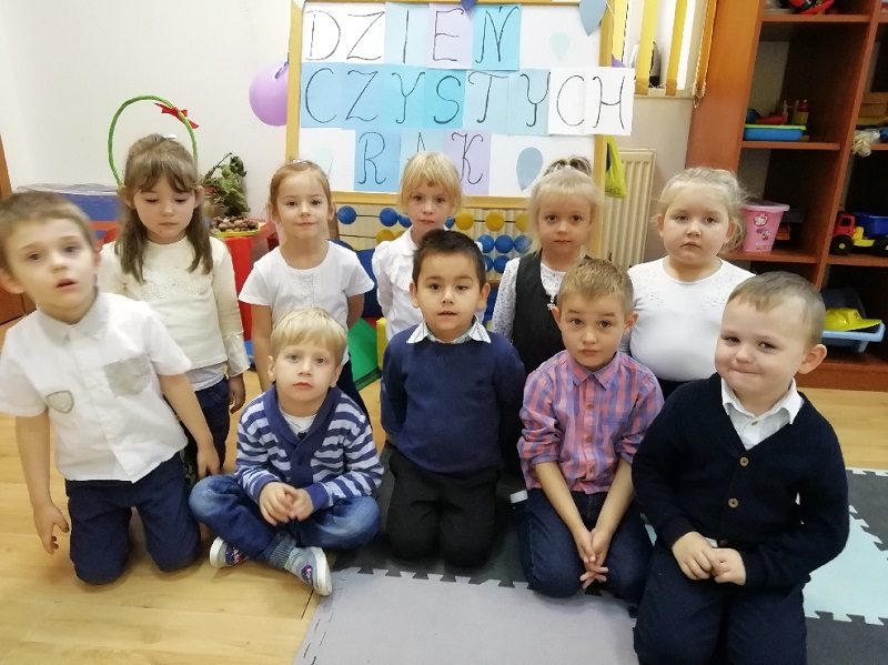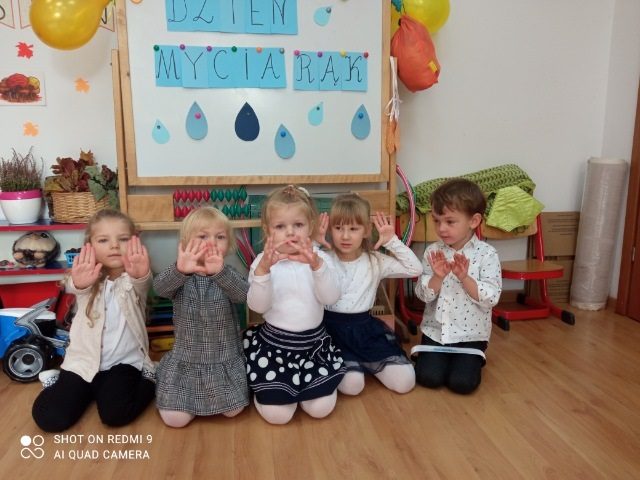 Celem obchodów tego Dnia jest uświadomienie społeczeństwu na świecie, jak duże znaczenie dla ich zdrowia i życia ma mycie rąk, które może uchronić przed zakażeniem wieloma chorobami. Zwłaszcza teraz, gdy na świecie zmagamy się z wirusem COVID-19, tak ważne jest kształtowanie czynności samoobsługowych i nawyków higienicznych u dzieci. W Przedszkolu w Krzynowłodze Małej Dzień Mycia Rąk obchodzono w środę 13 października. To święto rozpoczęło się od obejrzenia prezentacji i rozmowy na temat zarazków i bakterii, przedszkolaki dowiedziały się, jakie znaczenie dla zdrowia ma częste i dokładne mycie rąk. Omówiono także schemat mycia rąk oraz zastosowano go w praktyce. Każde z dzieci samodzielnie i zgodnie z instrukcją umyło swoje ręce. Wspólnie bawiono się z piosenką „Czyste ręce”.