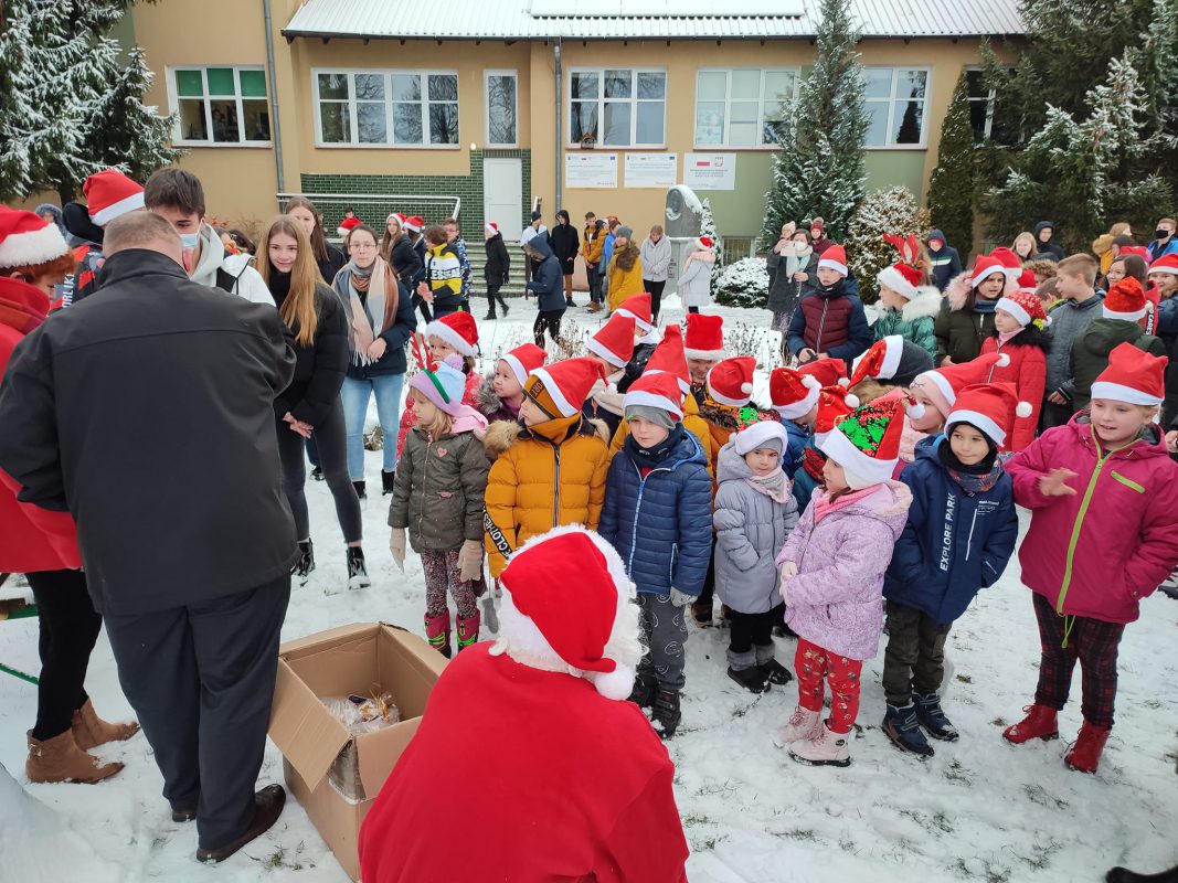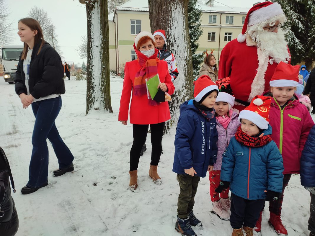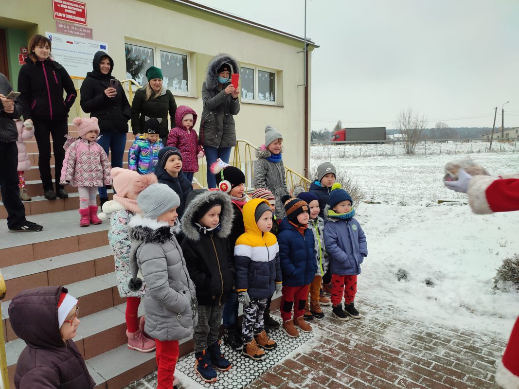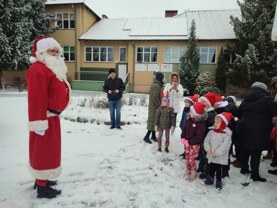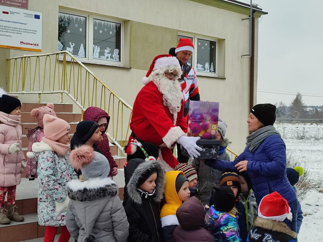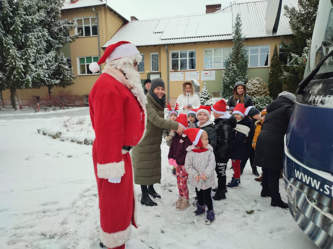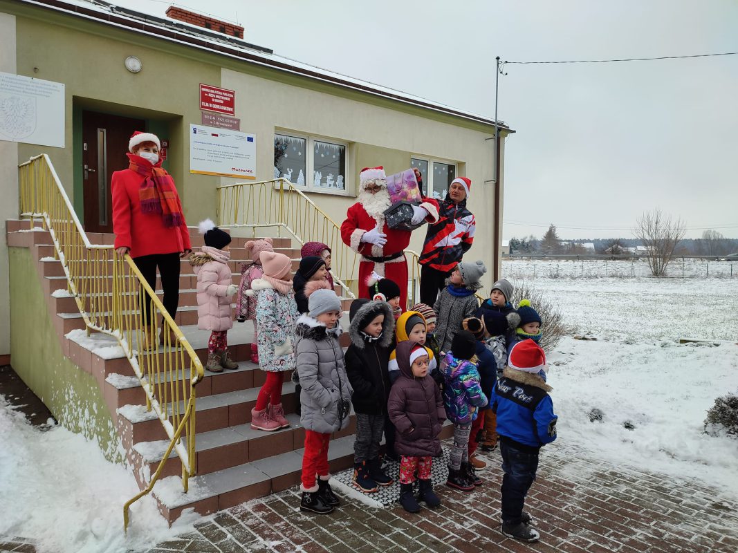 Święty Mikołaj wraz z Grażyną Wróblewską, Wójtem Gminy Przasnysz oraz przedstawicielami AMK Rzemieślnik odwiedził szkoły i oddziały przedszkolne w Lesznie, Bogatem, Dobrzankowie, Karwaczu, Nowej Krępie i Starej Krępie.