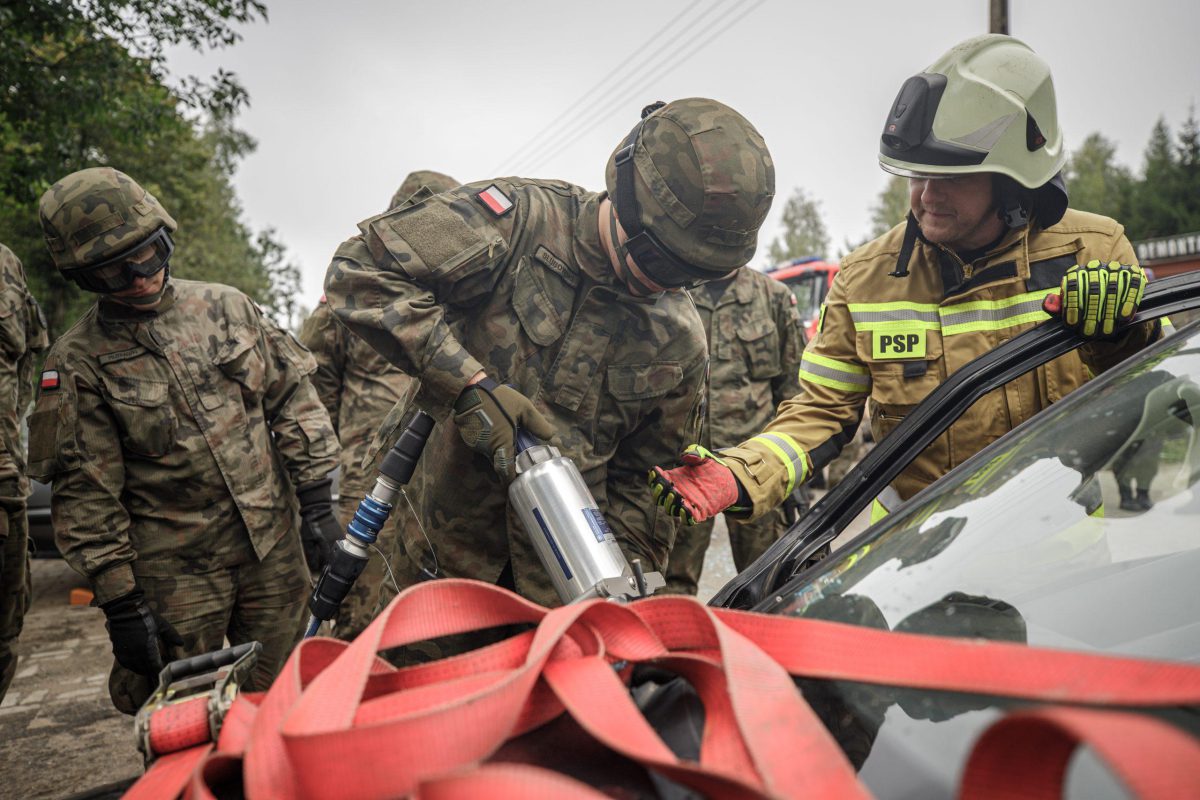 – Prowadzone przez nas zajęcia mają formę warsztatową, głównym tematem jest szeroko pojęte ratownictwo techniczne a dokładnie ratownictwo na drogach. Przerabiamy wszystkie punkty, które są logiką akcji ratownictwa na drogach. Mówimy o pojazdach na kołach, pojazdach na boku, pojazdach na dachu. Wszystko jest dostosowane do wyposażenia i umiejętności żołnierzy na tym etapie – mówi mł. bryg. Rafał Podlasiński, główny specjalista ds. wyszkolenia Szkoły Głównej Służby Pożarniczej – takie umiejętności i taka wiedza, bez względu na mundur a nawet u osób cywilnych są jak najbardziej wskazane. Wspólnym mianownikiem każdych działań tego typu jest pomoc osobom poszkodowanym zarówno na drogach w komunikacji drogowej jak i kolejowej. W przypadku dużych zdarzeń o charakterze masowym, taka wiedza i umiejętności żołnierzy mogą być z powodzeniem wykorzystywane jako wsparcie innych służb ratowniczych – dodaje.
