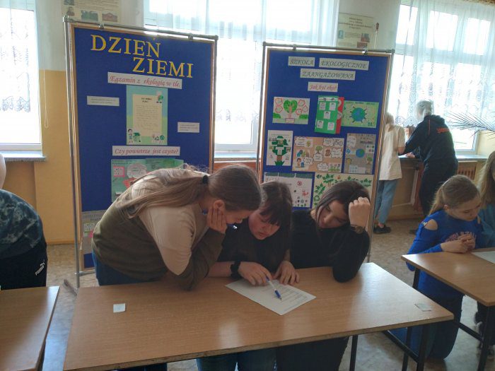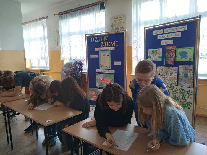 W piątek, 22 kwietnia w ramach obchodów Światowego Dnia Ziemi odbył się Szkolny Konkurs Ekologiczny. Do konkursu przystąpiło 21 uczniów z klas 5-8, którzy losowo zostali podzieleni na zespoły 3-osobowe: