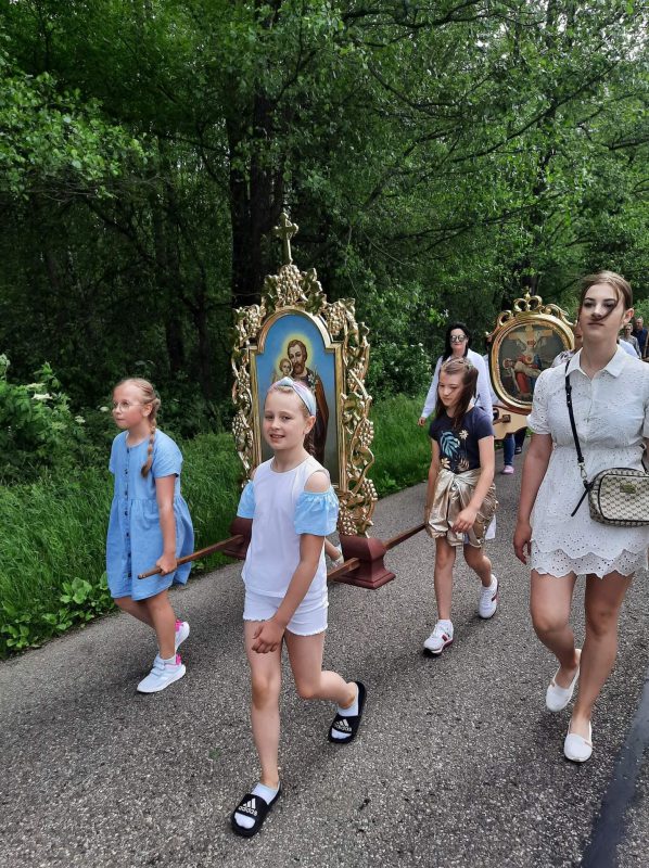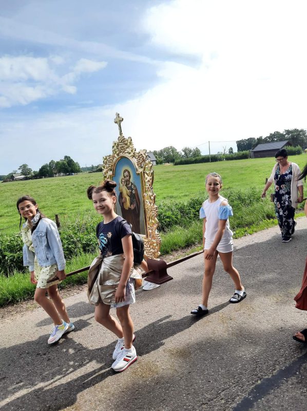 Kiedyś obrazy były stawiane w domach, teraz ustawiane są budynkach użyteczności publicznej czyli świetlicach wiejskich. Od niedzieli do środy [poprzedzającej Boże Ciało – przyp.red] mieszkańcy poszczególnych wiosek gromadzą się wokół obrazów i modlą się różnych intencjach i prośbach. W czwartek, w Boże Ciało, obrazy są odnoszone do kościoła. Procesja rano rusza z Pościenia Wsi. W Pruskolece oczekują pielgrzymi ze swoim obrazem by razem iść w stronę Raszujki, gdzie już czekają jej mieszkańcy. Grupa pielgrzymów się powiększa gdy dochodzą z obrazem wierni z Budek. Wszyscy maszerują o kościoła w Chorzelach. W czasie drogi są śpiewane pieśni i odmawiane modlitwy. Podobna procesja odbywa się do Łazu.
