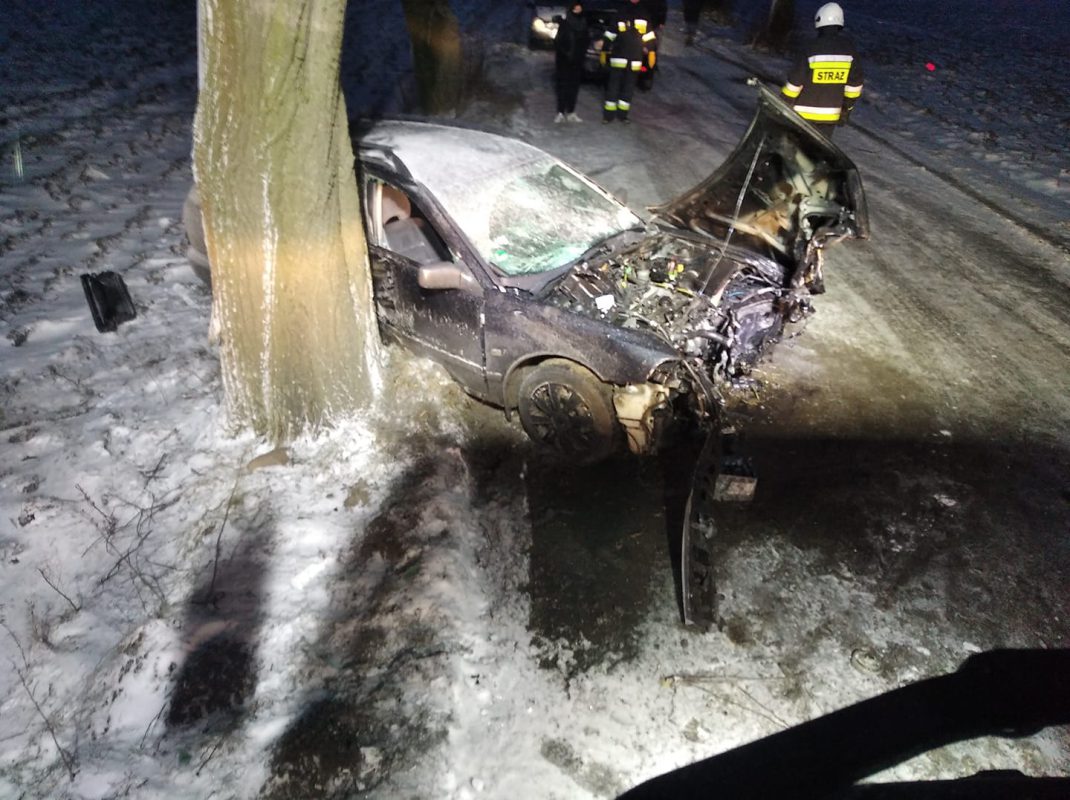 o godz 17.46 w Lisiogórze samochód osobowy uderzył w drzewo.