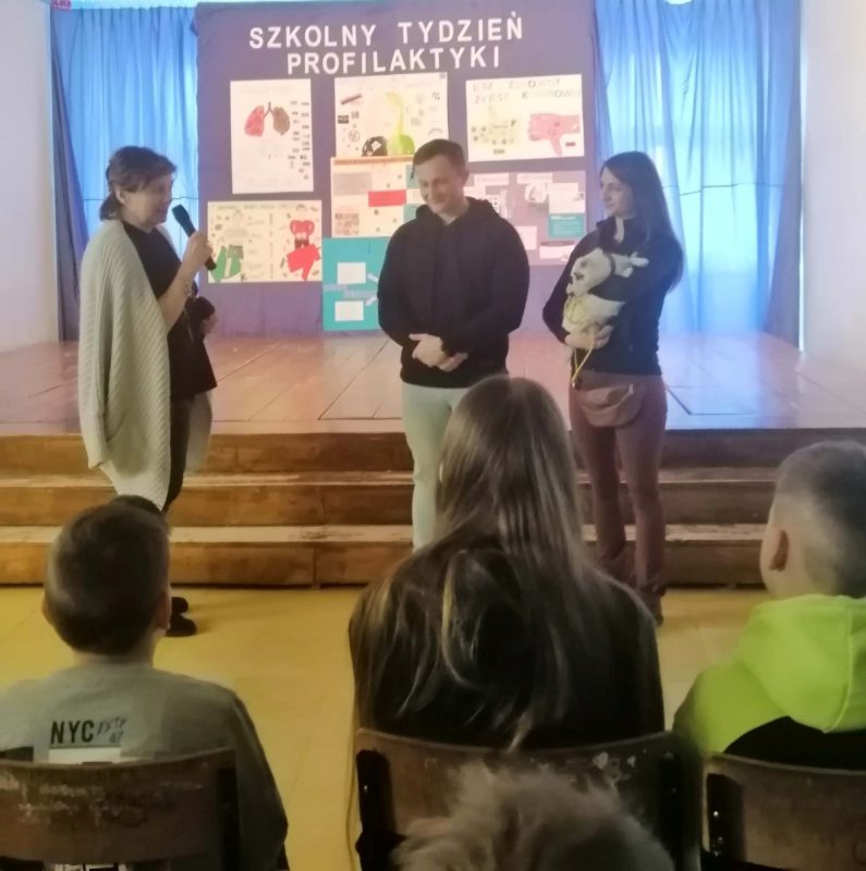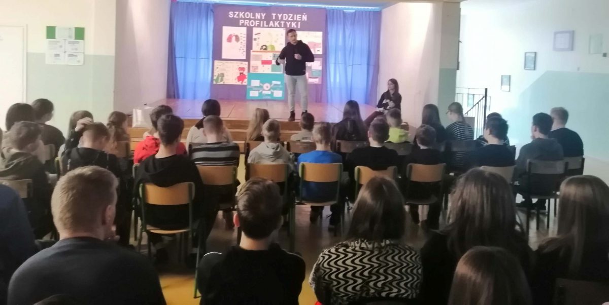 Z racji zawodu jaki wykonują, pogadankę rozpoczęli od przedstawienia pozytywnych aspektów aktywności fizycznej w prozdrowotnym stylu życia. Uczniowie dowiedzieli się jak uprawianie sportu połączone z właściwą dietą wpływa na kondycję oraz zdrowie. Mariusz zwrócił szczególną uwagę na negatywny wpływ używek, które rujnują nasze zdrowie, nie tylko fizyczne, ale również psychiczne. Podkreślił, że w młodym wieku człowiek jest podatny na wpływy otoczenia i konieczna jest stanowczość i asertywność w dokonywaniu wyborów.
