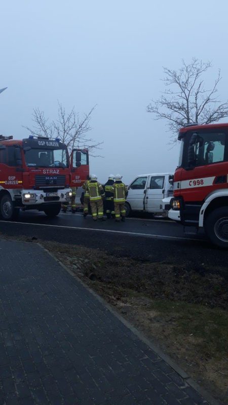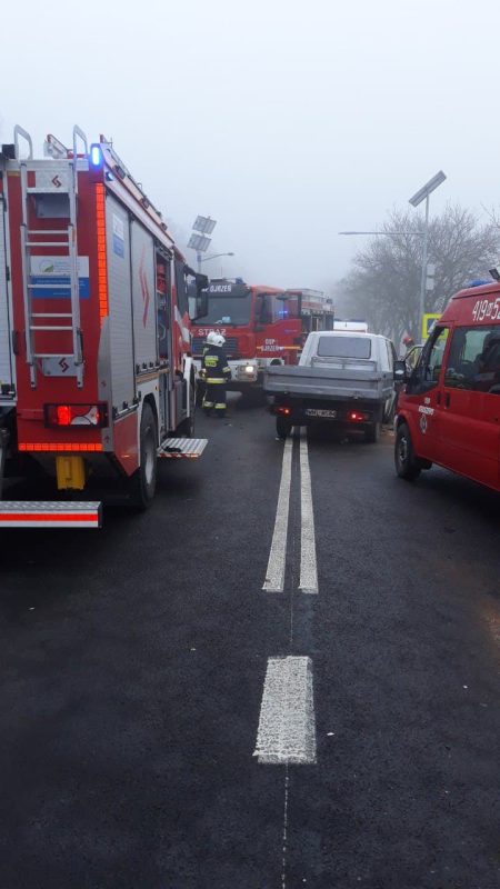 W poniedziałek, 15 marca ok. godz. 6:40 w Kraszewie Audi zderzyło się czołowo z Volkswagenem Transporterem, poszkodowanych jest 7 osób.