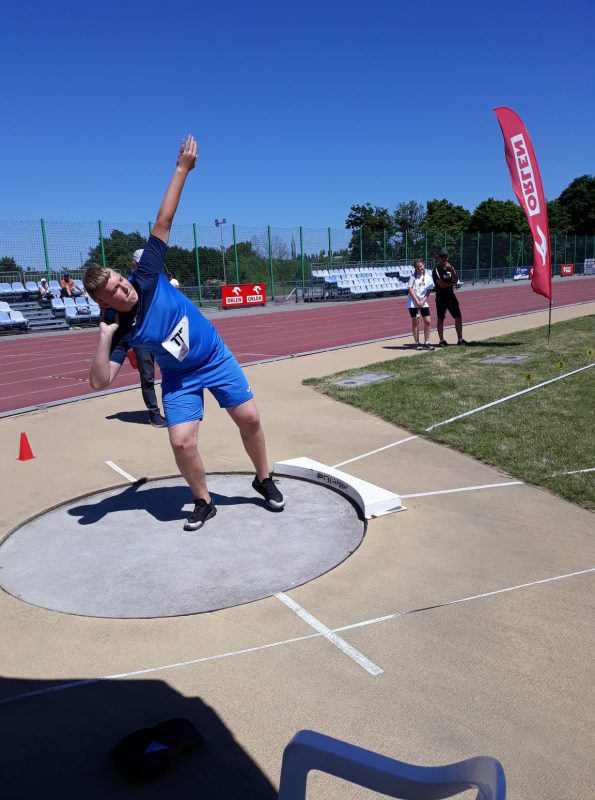 – 4 miejsce – Filip Linowski – rocznik 2008 – pchnięcie kulą 3kg – 11,20m – SP 2 Chorzele