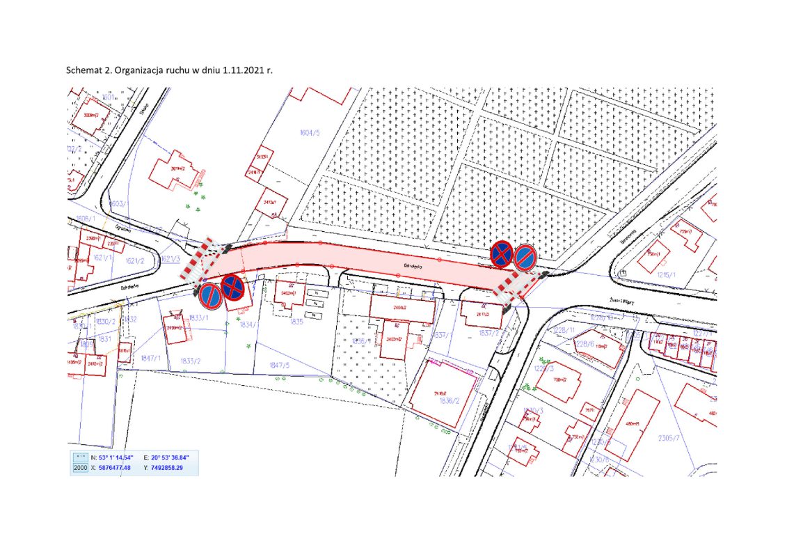 W dniach od 29.10.2021 do 1.11.2021 r. zmianie ulegnie organizacja ruchu na drodze gminnej ulicy Ostrołęckiej na odcinku od skrzyżowania z ulicą Baranowską do skrzyżowania z ulicą Ogrodową według załączonych schematów 1 i 2.