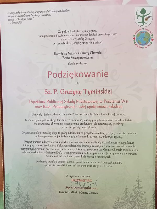 – Jest nam niezmiernie miło, że nasza praca została nagrodzona – mówi społeczność Szkoły Podstawowej w Pościeniu Wsi.