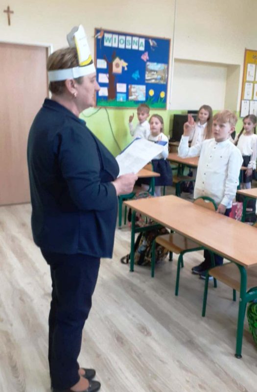 Nauczyciel – bibliotekarz Elżbieta Chmielińska wraz z wychowawczynią Martą Piotrowską wcieliły się w role książki oraz sowy i wprowadziły dzieci w świat baśni i bajek. Uczniowie poznali autorów lektur szkolnych, które będą omawiali podczas nauki w klasach I – III.