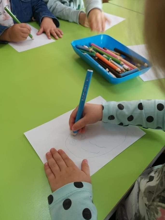 Zajęcia z bajkoterapii pt. „Jak do przedszkółka przyszła dziwna dziewczynka”. Dzieci zbierały doświadczenia w zakresie: dostrzegania niepowtarzalności każdej osoby, jej pozytywnych cech i zachowań, podnoszenia poczucia własnej wartości i rozwijania i wzmacniania więzi emocjonalnej między dziećmi w grupie.