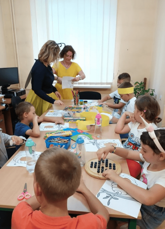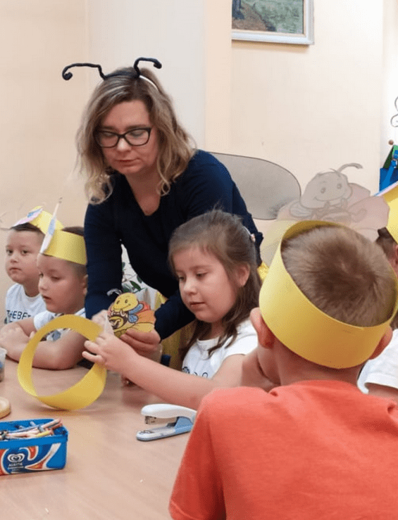Na zakończenie uczestnicy dzisiejszych zajęć wykonali za pomocą papieru, farb, plasteliny oraz folii bąbelkowej, pracę plastyczną pt. „Jak w ulu”.