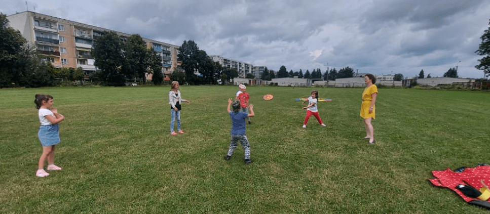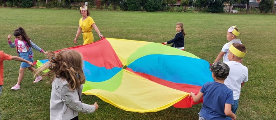 Dzieci chętnie wyrażały swoje spostrzeżenia, a dodatkową atrakcją były zabawy integracyjne na świeżym powietrzu z wykorzystaniem chusty animacyjnej, hula-hop oraz balonów.