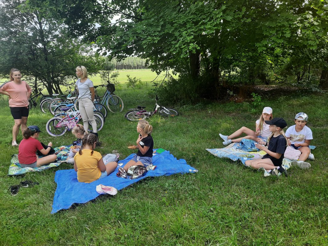 W środę przesiedliśmy się na rowery i pojechaliśmy na rajd ścieżką rowerową do Lipy. Na miejscu rozłożyliśmy kocyki, pograliśmy w ulubione gry, zregenerowaliśmy siły i ruszyliśmy w drogę powrotną do Jednorożca.