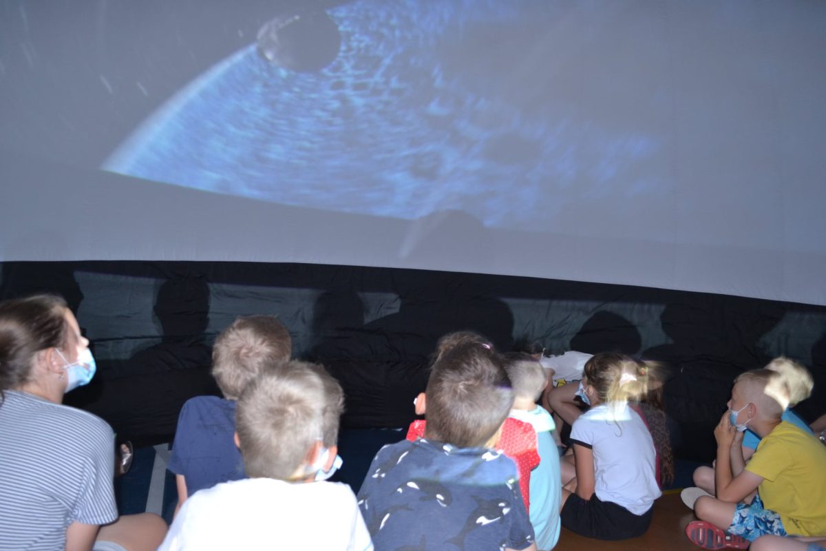 Podczas pokazu „Gwiezdne opowieści” uczniowie poznali najpiękniejsze gwiazdozbiory , obejrzeli także wszystkie planety oraz poznali obiekty głębokiego nieba, widoczne jedynie przez bardzo duże teleskopy.