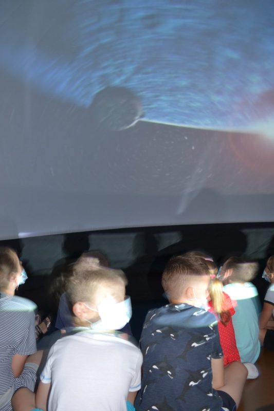 W planetarium uczniowie odbyli wirtualną podróż do odległych zakątków Wszechświata, podziwiali z bliska kosmos oraz mogli poczuć się, jak astronauci wewnątrz statku kosmicznego.