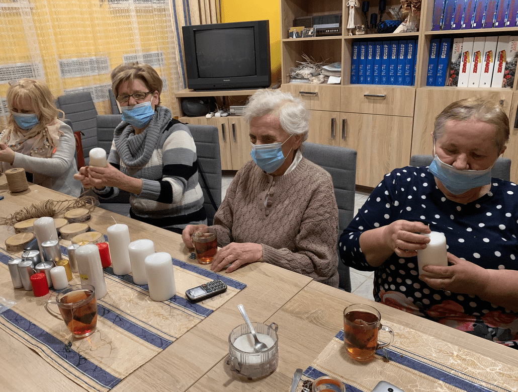 Na spotkaniu Panie poznały nowy sposób dekorowania świec, które mogą posłużyć zarówno jako dekoracja świątecznego stołu lub prezent dla kogoś bliskiego. Warsztaty poprowadziła Pani Wanda Zagroba.
