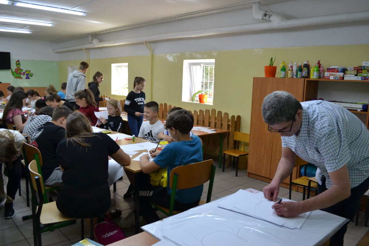 Spotkanie było ciekawą formą edukacji na temat powstawania ilustracji książkowej, okazją do poznania narzędzi ilustratora i tajników tego zawodu. Nasz gość zdradził dzieciom, że jego praca wymaga przede wszystkim znajomości tekstu, dużej wyobraźni i talentu. Uczniowie Szkoły Podstawowej w Bogatem dowiedzieli się również, że każda ilustracja powinna być zachęcająca do czytania książki, pełna wrażliwości i inwencji twórczej.