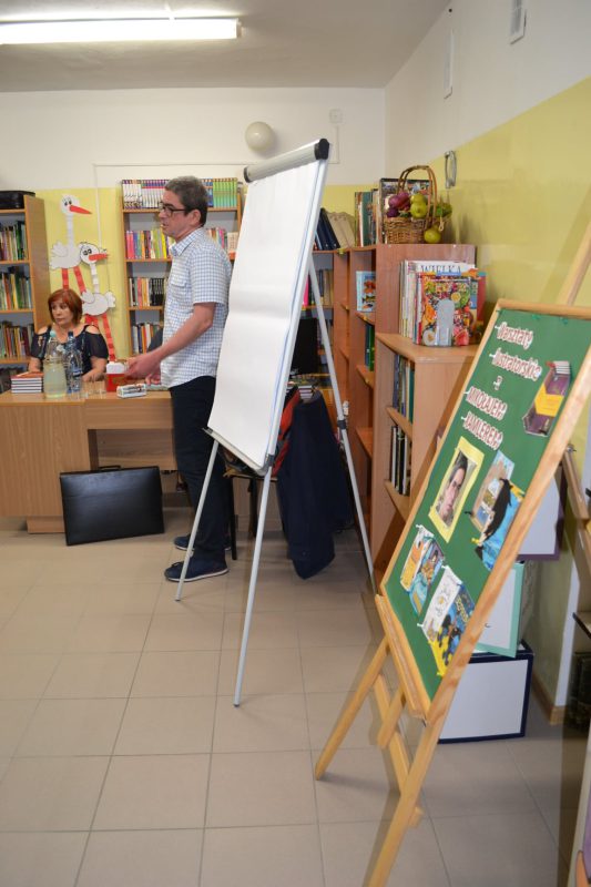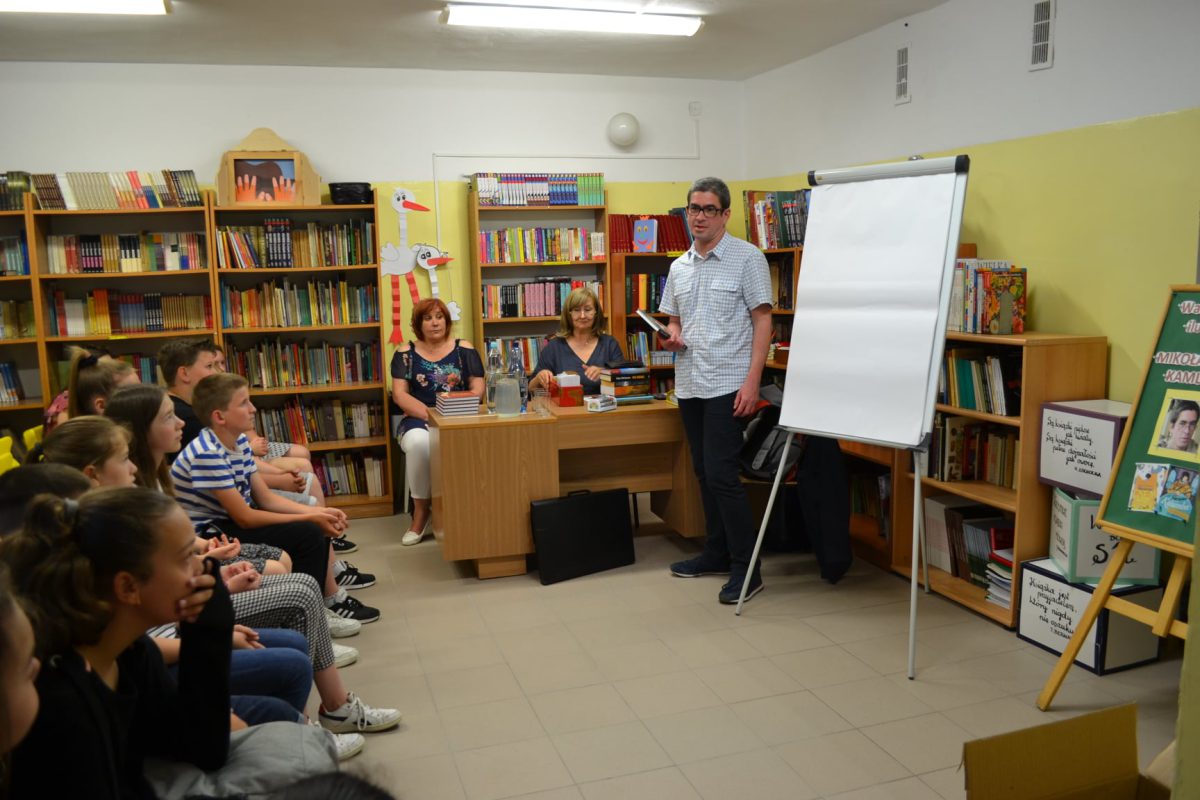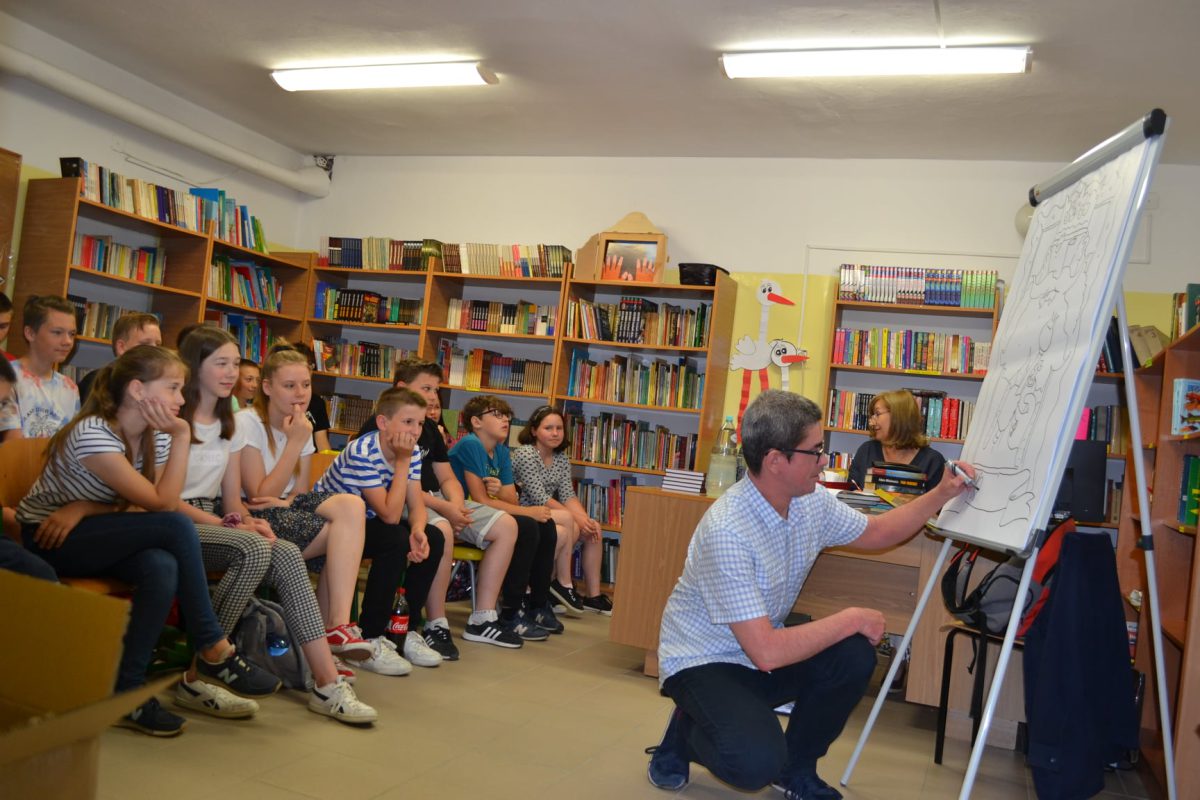 W czwartek, 17 czerwca w Gminna Biblioteka Publiczna im. Józefa Narzymskiego w Bogatem w ramach projektu „Czas na książkę – cykl wydarzeń kulturalnych w gminie Przasnysz” zorganizowała spotkanie z panem Mikołajem Kamlerem – ilustratorem książek dla dzieci. Ukończył studia na warszawskiej ASP w 1995 r. i od tego czasu rysuje ilustracje, projektuje okładki do książek, a czasem robi też filmy animowane.