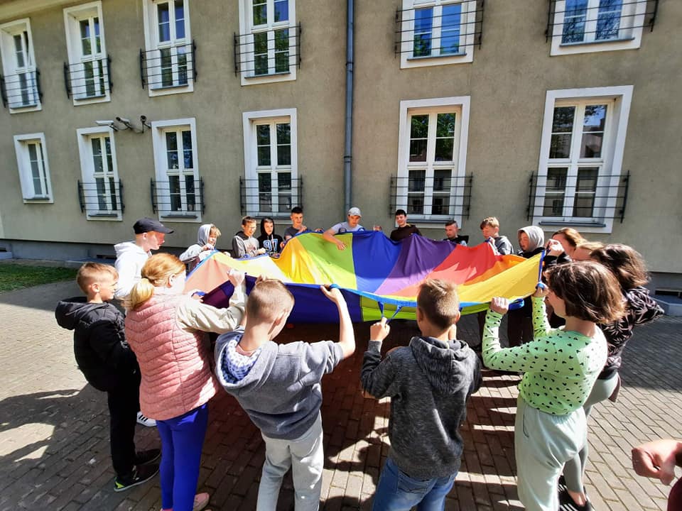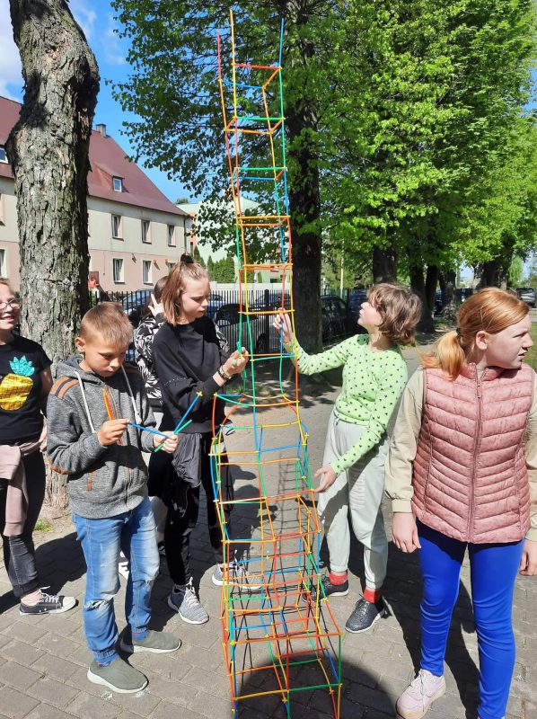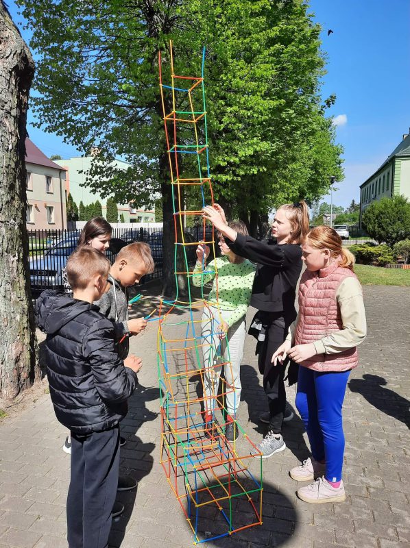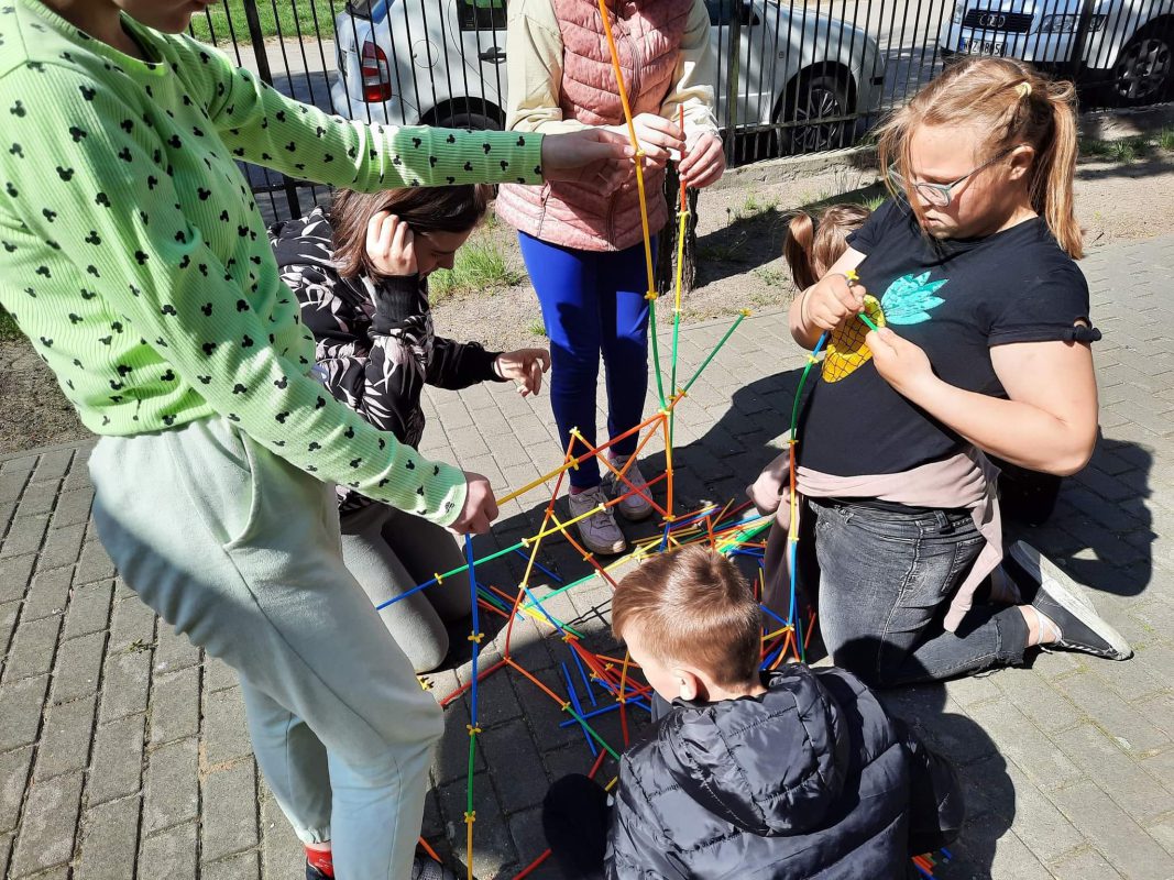 Podczas zajęć uczniowie rozwiązywali kreatywne zagadki. Powstały pomysłowe budowle z klocków konstrukcyjnych. Wszyscy chętnie bawili się z chustą animacyjną. Bardzo dziękujemy Paniom z Biblioteki Pedagogicznej za ciekawe i aktywizujące zajęcia.
