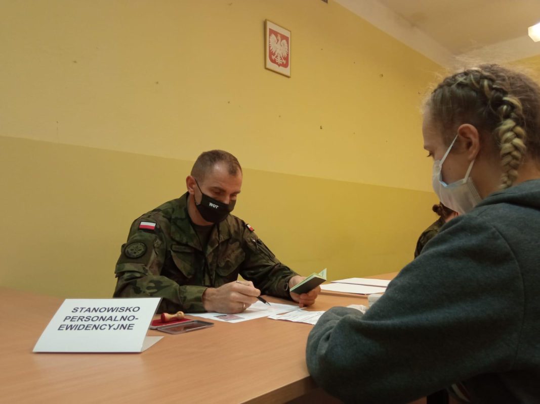 Na szkolenie stawiło się dziś 29 kandydatów, wśród nich 12 kobiet. Po załatwieniu spraw ewidencyjnych, pobrali ekwipunek niezbędny dla żołnierza i podeszli do egzaminu sprawności fizycznej, podczas którego obowiązywały ich 3 dyscypliny – bieg na 3000m, skłony tułowia w przód oraz pompki. Do wieczora czekają ich szkolenia teoretyczne z zakresu PHP i finansów, prawa czy obsługi platformy informacyjnej WOT. Jutro nowych terytorialsów czeka sprawdzian z wiedzy na temat karabinka MSBS Grot. Kandydaci wiedzę tę, musieli przyswoić w formie e-learningowej zanim wstąpili do służby.