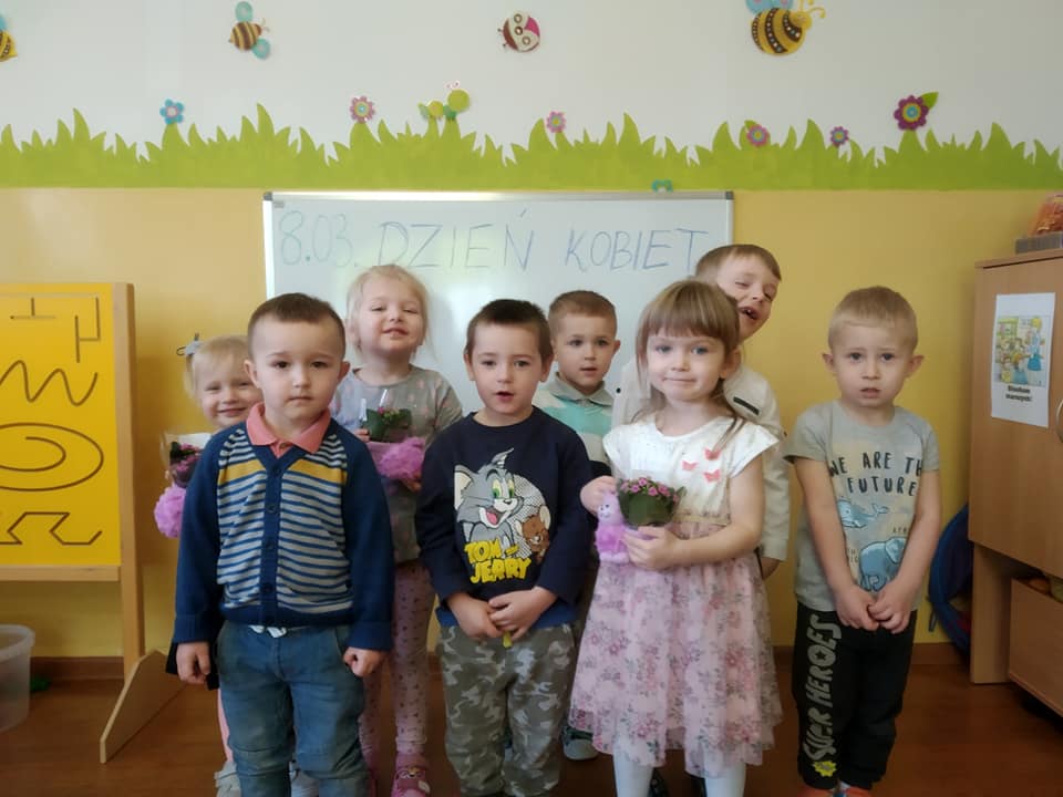 8 marca w przedszkolu w Dobrzankowie obchodzono Dzień Kobiet. W tym szczególnym dniu wszyscy chłopcy w każdej grupie składali życzenia dziewczynkom i swoim paniom. Nie obyło się bez cukierków, drobnych upominków i kwiatów… Z dziewczęcych buź uśmiech nie schodził przez calutki dzień, a chłopcy byli przemili, uczynni i sympatyczni.