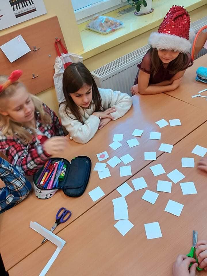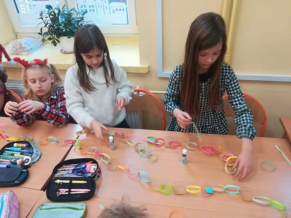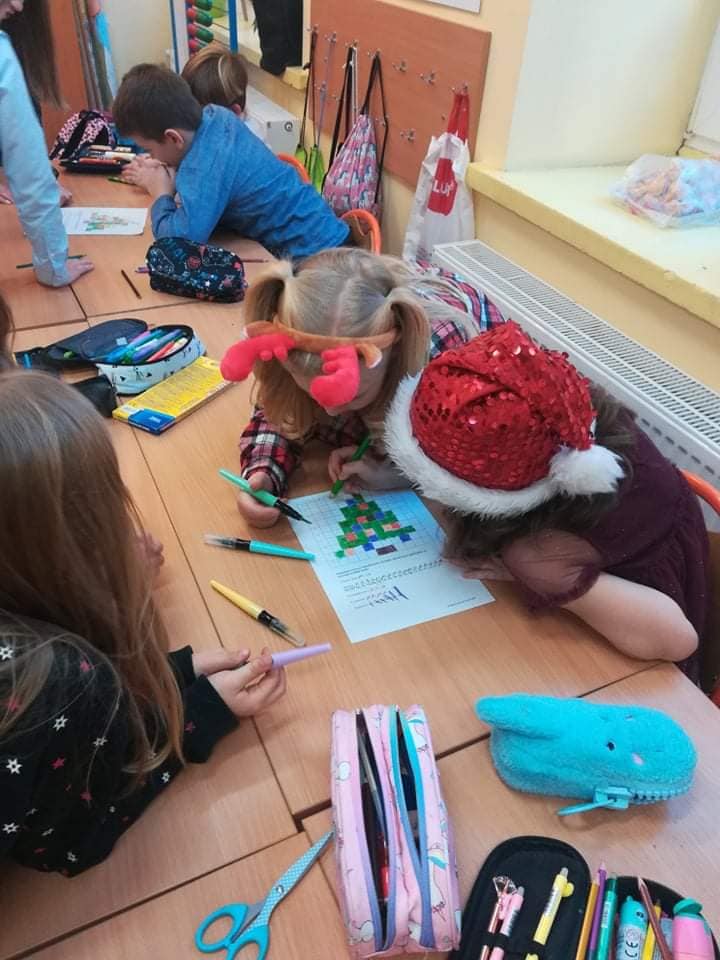Przygotowywali i grali w Memory, rozkodowywali choinkę świąteczną, pomagali Mikołajowi pozbierać się w całość. Ostatnie zadanie polegało na wykonaniu najdłuższego łańcucha na klasową choinkę,