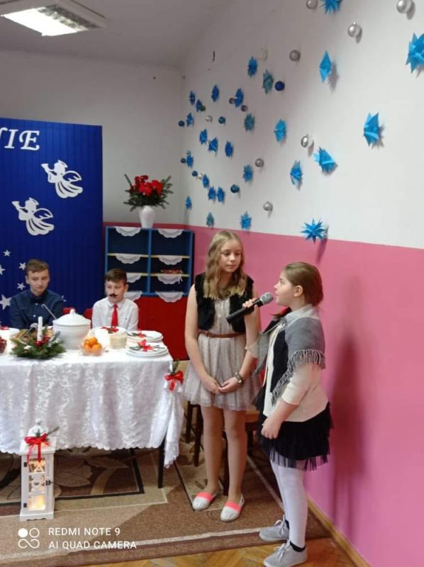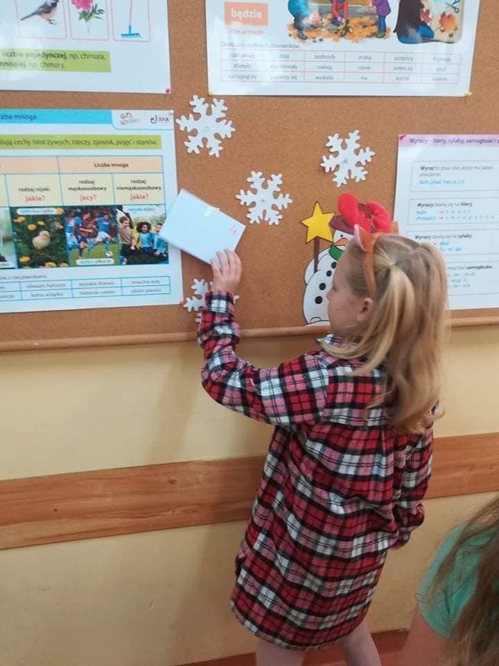 W piątek 17 grudnia w wigilijnym dniu klasa II a poza poczęstunkiem i złożeniem sobie życzeń świątecznych miała wigilijne zadania do wykonania. Uczniowie odszukiwali w sali koperty, w których zapisane były zadania.