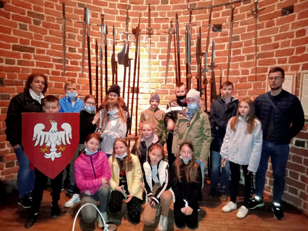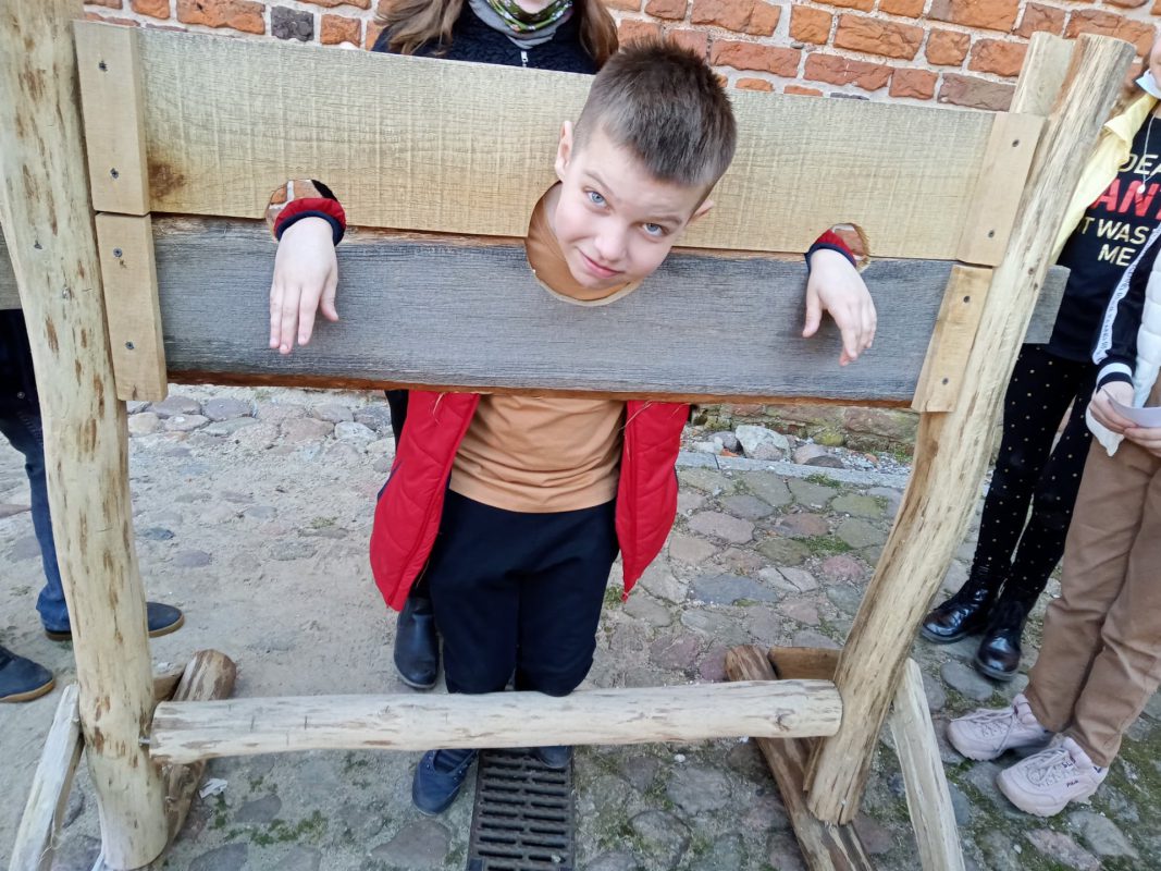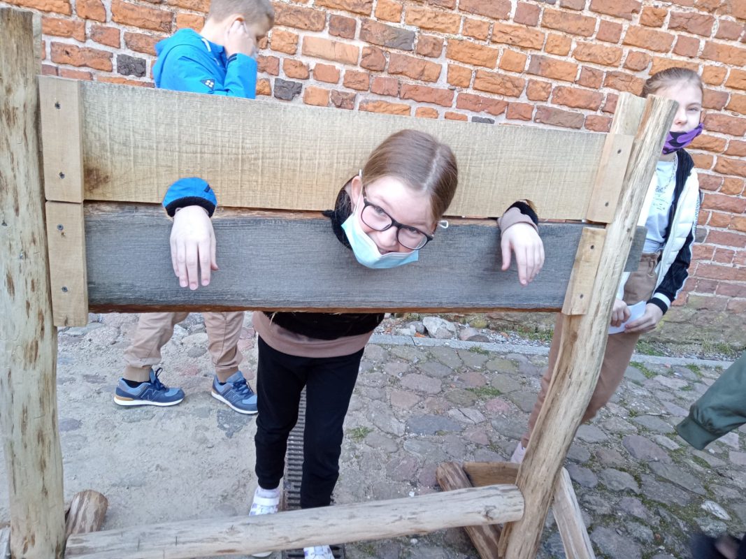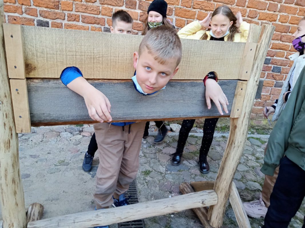 Po niespełna pół godzinnej podróży dotarli do Zamku Książąt Mazowieckich w Ciechanowie. Przewodniczka bardzo ciekawie opowiadała o losach zamku i jego mieszkańców. Na dziedzińcu zamkowym, co odważniejsi, sprawdzili, jak czuli się złoczyńcy, którzy odbywali karę zamknięcia w dybach. Szczęśliwie wszyscy wyruszyli w dalszą drogę. Po obejrzeniu filmu w kinie, małej przekąsce, pojechali do Parku Nauki Torus. Tam przeprowadzali doświadczenia z różnych dziedzin. Sprawdzali też, jak działa witamina C, w jakiej postaci najlepiej ją spożywać i gdzie jest jej najwięcej. Wspólnie spędzony czas upłynął bardzo szybko.