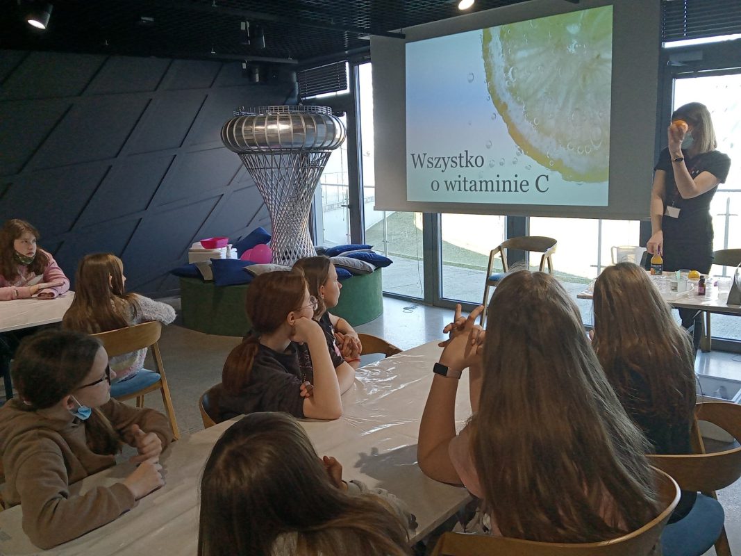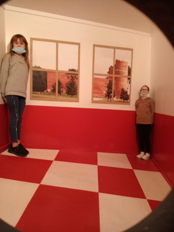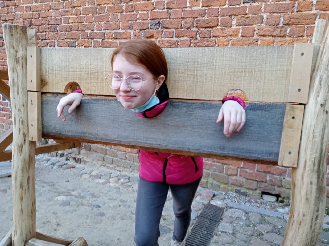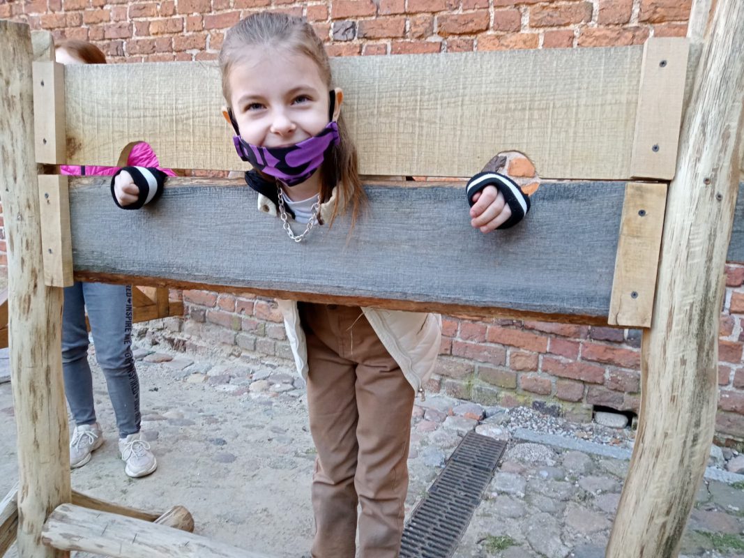 Po niespełna pół godzinnej podróży dotarli do Zamku Książąt Mazowieckich w Ciechanowie. Przewodniczka bardzo ciekawie opowiadała o losach zamku i jego mieszkańców. Na dziedzińcu zamkowym, co odważniejsi, sprawdzili, jak czuli się złoczyńcy, którzy odbywali karę zamknięcia w dybach. Szczęśliwie wszyscy wyruszyli w dalszą drogę. Po obejrzeniu filmu w kinie, małej przekąsce, pojechali do Parku Nauki Torus. Tam przeprowadzali doświadczenia z różnych dziedzin. Sprawdzali też, jak działa witamina C, w jakiej postaci najlepiej ją spożywać i gdzie jest jej najwięcej. Wspólnie spędzony czas upłynął bardzo szybko.