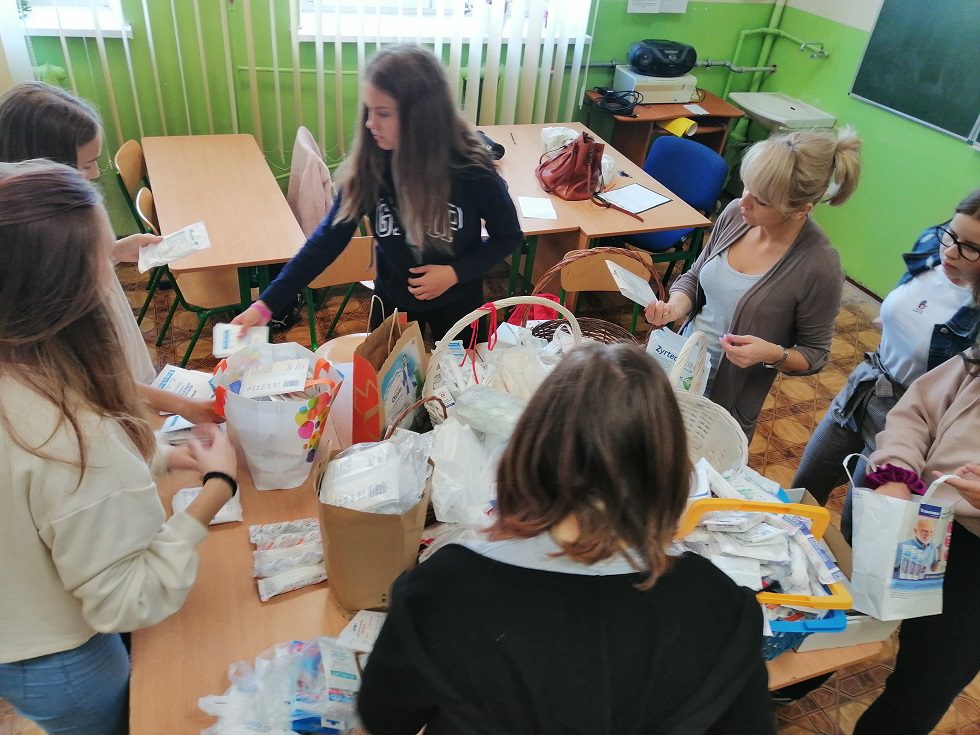 Idąc za przykładem nauczycieli uczniowie również przyłączyli się do akcji Fundacji Redemptoris Missio – „Opatrunek na ratunek”. Dzięki tej zbiórce najbiedniejsze przychodnie i szpitale misyjne w Afryce zostaną zaopatrzone w bandaże, kompresy, gazy, środki odkażające, plastry, termometry i wszelkie drobne produkty medyczne. Nauczycielka szkoły Elżbieta Krajewska wraz z przedstawicielami Samorządu Uczniowskiego sprawnie przeliczyli, zapakowali i wysłali 15 kg środków medycznych.
