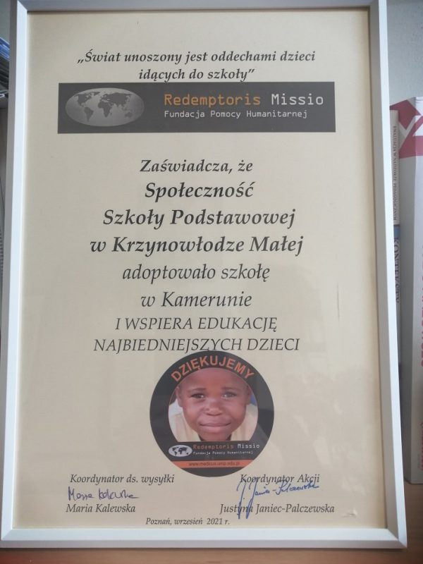 W placówce nauczyciele zawsze starają się dawać dobry przykład, więc i w tej sferze to oni pierwsi przystąpili do działania. Rada Pedagogiczna od 1 września zaangażowała się w akcję „Adoptuj Szkołę” organizowanej przez Fundację Humanitarną Redemptoris Missio. W ramach niej nauczyciele zorganizowali w swoim gronie zbiórkę pieniężną i zaadoptowali szkołę w Kamerunie. Dzięki comiesięcznym wpłatom Szkoła w Kamerunie może zakupić zeszyty, podręczniki, przybory szkolne oraz zapewnić posiłek swoim uczniom.