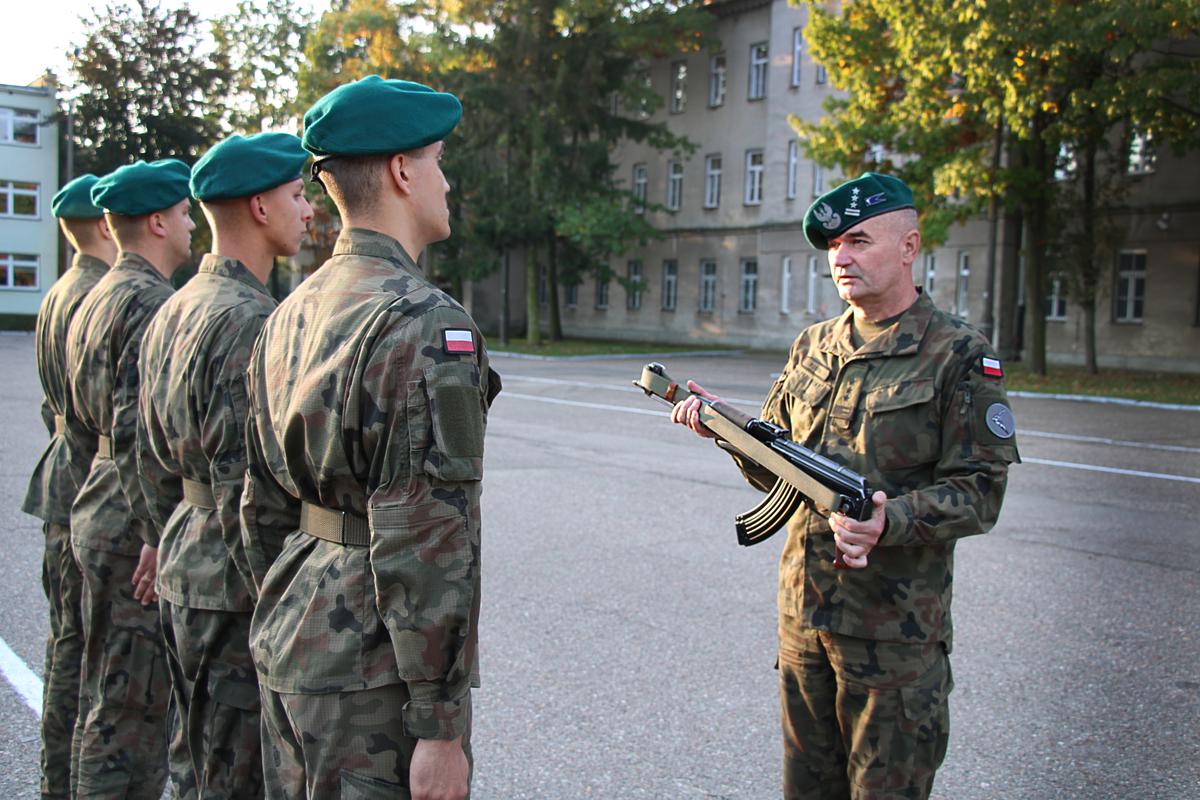 – Akt wręczenia broni, obok złożenia przysięgi wojskowej, jest symbolem gotowości do obrony Ojczyzny ale i wielkiej odpowiedzialności. Chciałbym szczególnie podkreślić symbolikę broni, atrybutu żołnierza, który stanowi narządzie do utrzymania bezpieczeństwa i suwerenności naszego kraju. Serdecznie Wam gratuluję i dziękuję, za to że podjęliście decyzje, aby swoją przyszłość związać z wojskiem. Przed Wami okres intensywnego szkolenia. Wykorzystajcie ten czas jak najlepiej potraficie, bo każdego dnia żołnierz powinien przekraczać granice przeciętności. Dla mnie osobiście ale myślę, że i dla innych dowódców na szczególne uznanie zasługuje podwładny, który wychodzi naprzeciw wyzwaniom, wykazuje się inicjatywą, jak i również pozostaje kreatywny i chętnie dzieli się swoimi umiejętnościami wykraczającymi poza ramy określone w codziennej służbie, czego Wam z tego miejsca życzę.”