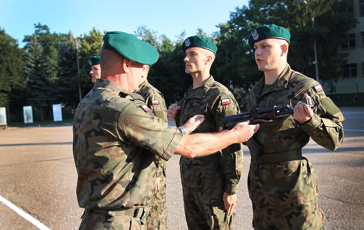 Zgodnie z zapisami „Ceremoniału Wojskowego Sił Zbrojnych Rzeczypospolitej Polskiej” czterech wyróżniających się podczas pierwszych dni szkolenia elewów otrzymuje broń z rąk dowódcy jednostki. Na dzisiejszym apelu tego zaszczytu dostąpili: szer. elew Jakub TyrkA, szer. elew Krzysztof Brzostek, szer. elew Marek Piątek oraz szer. elew Kamil Burchacki.