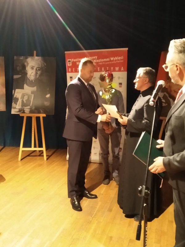 16 października w Miejskim Domu Kultury w Przasnyszu odbyło się wręczenie Świadkom Historii statuetek – Sygnetów Niepodległości i Drzwi do Wolności. Następnie uczestnicy obejrzeli dwa filmy – „Sny stracone, sny odzyskane” oraz „Położna” – w ramach Retrospektywy Festiwalu Filmowego Niepokorni Niezłomni Wyklęci, imprezy organizowanej przez Arkadiusza Gołębiewskiego i od lat wspieranej przez Instytut Pamięci Narodowej. W uroczystości wziął udział Prezes IPN dr Karol Nawrocki. Partnerem wydarzenia był Powiat Przasnyski na czele ze starostą Krzysztofem Bieńkowskim.