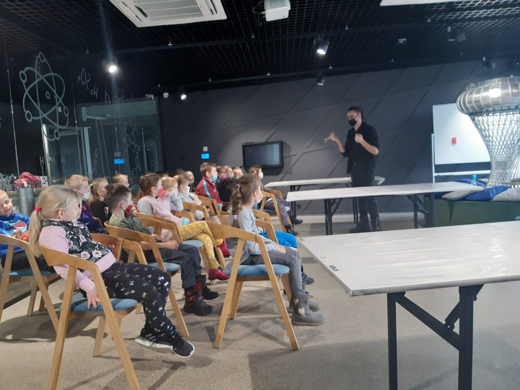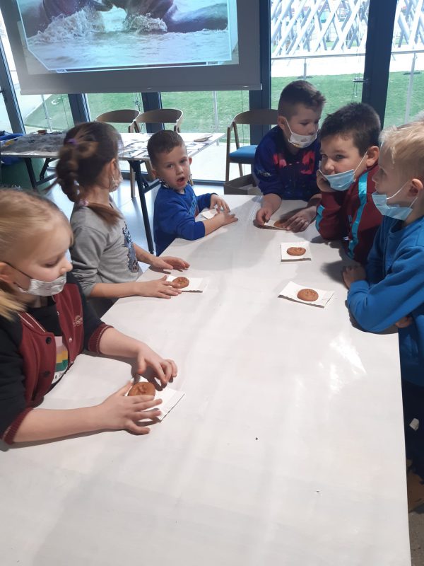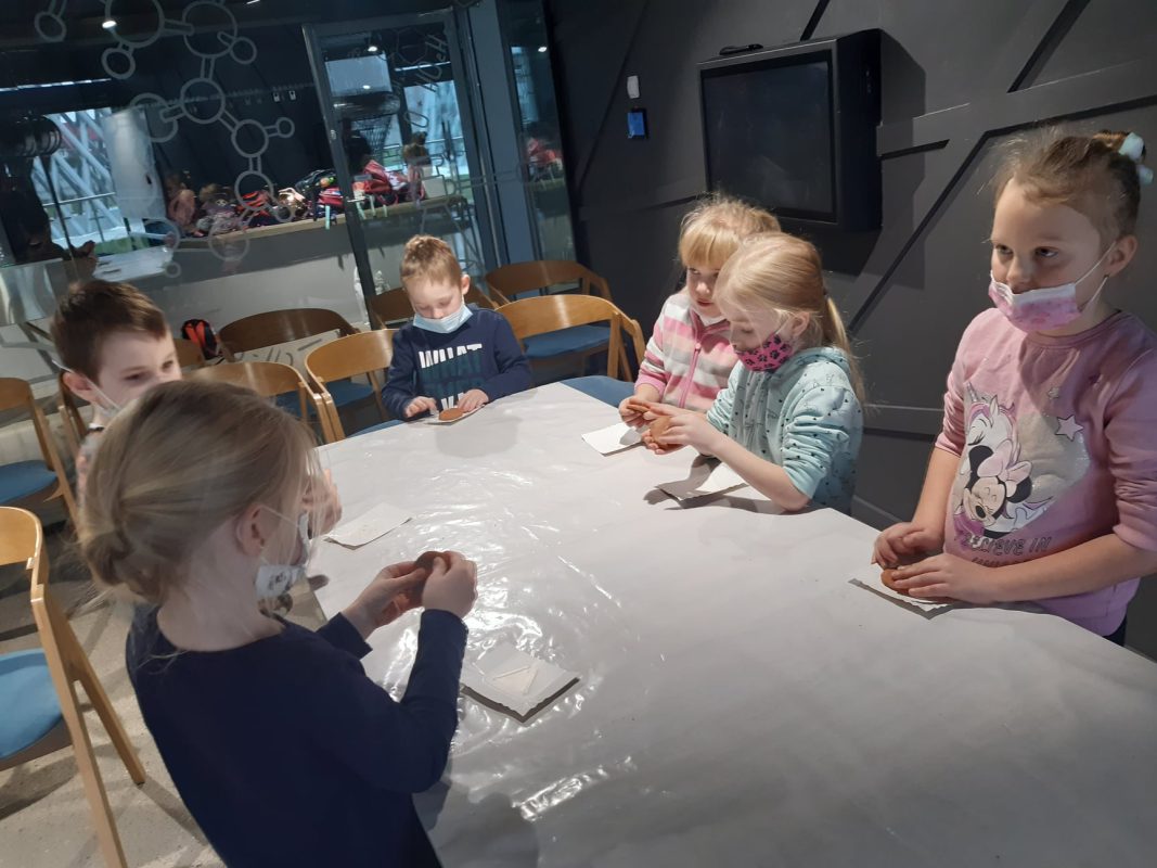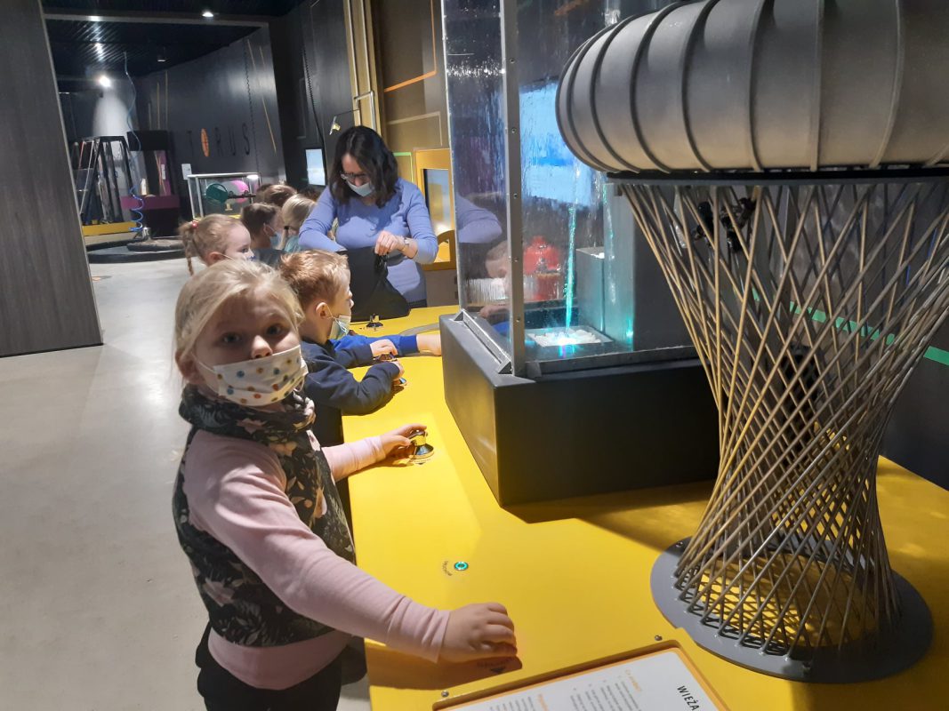 Kolejnym celem wycieczki był Park Nauki Torus, który pod okiem przewodnika umożliwia poznanie zjawisk fizycznych od strony samodzielnych eksperymentów i zabawy. Poprzez samodzielne doświadczenia dzieci poznały zjawiska fizyczne a pani prowadząca tłumaczy je w sposób bardzo przystępny. Po zwiedzaniu odbyły się warsztaty na temat „Tropem zwierząt”. Takie atrakcje sprawiły wiele radości wszystkim sześciolatkom.