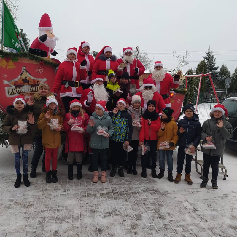 Moto-Mikołaje na wielkich saniach z pompą wjechali na szkolny parking. Uczniowie już na nich czekali. Część z nich przywitała ich na dworze, przed szkołą, a część podziwiała ich zza klasowych okien. Odwiedzin w szkole i uścisków nie było, ale sama obecność i chwila rozmowy przed szkołą wystarczyły, żeby wzbudzić w dzieciach całą paletę pozytywnych emocji.