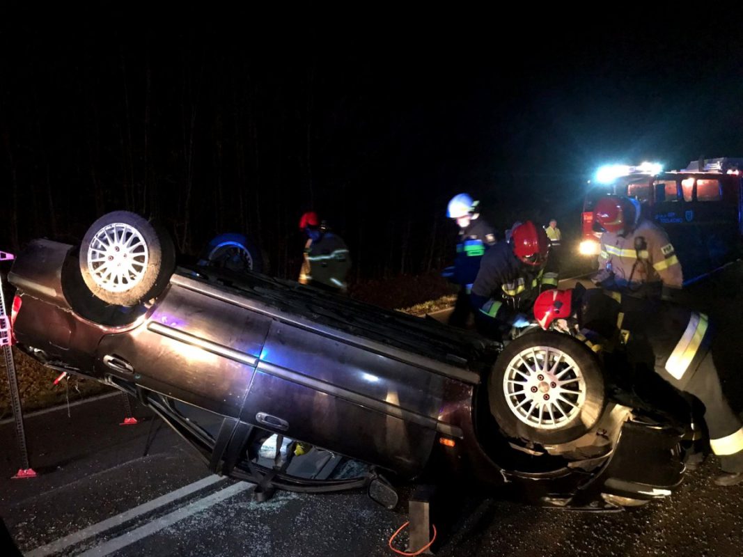 Szczycieńskie służby ratunkowe pracowały na miejscu zdarzenia drogowego, do którego doszło na DK-57 w pobliżu miejscowości Dębówko w gminie Szczytno. Ze wstępnych ustaleń mundurowych wynika, że 22-letni kierowca Hondy chcąc uniknąć zderzenia z dzikami, które wybiegły na jezdnię, zjechał na pobocze, a następnie dachował.