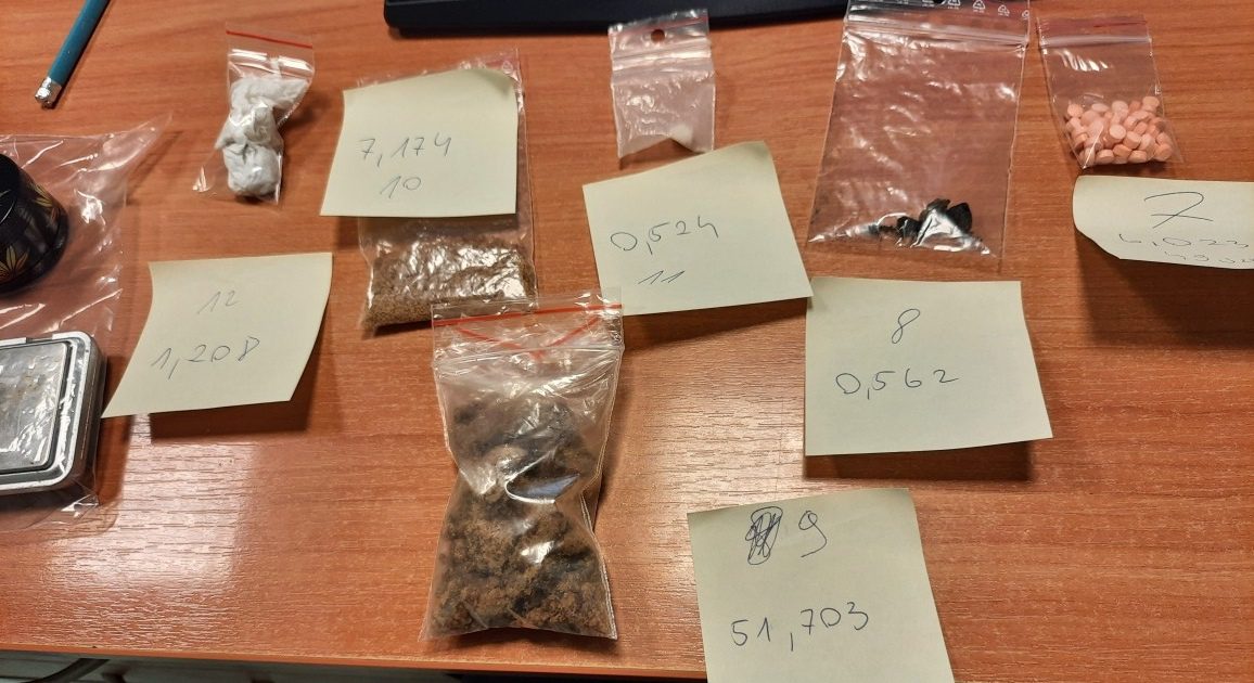 Podczas ich realizacji w mieszkaniu policjanci zastali 20 – letniego mężczyznę i 19 – letnią kobietę. Obydwoje to mieszkańcy Makowa Mazowieckiego. Podczas przeszukania w mieszkaniu funkcjonariusze znaleźli i zabezpieczyli w sumie blisko 60g metamfetaminy, 2g marihuany, 0,5g amfetaminy i 50 sztuk tabletek ecstasy. Do tego wagę elektroniczną oraz kilka tysięcy złotych gotówki.