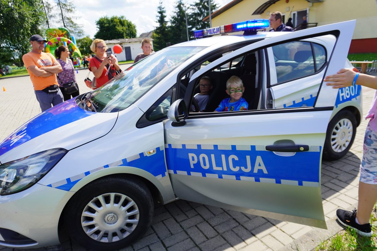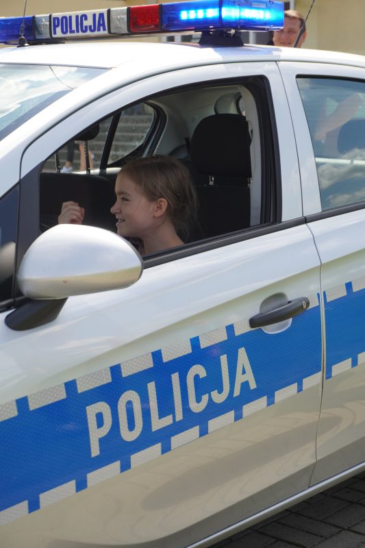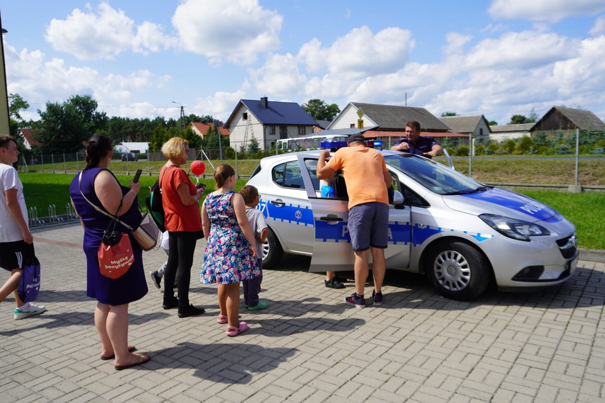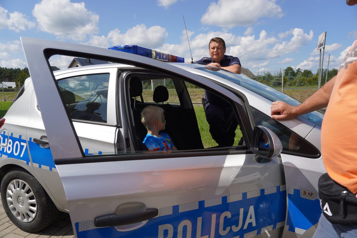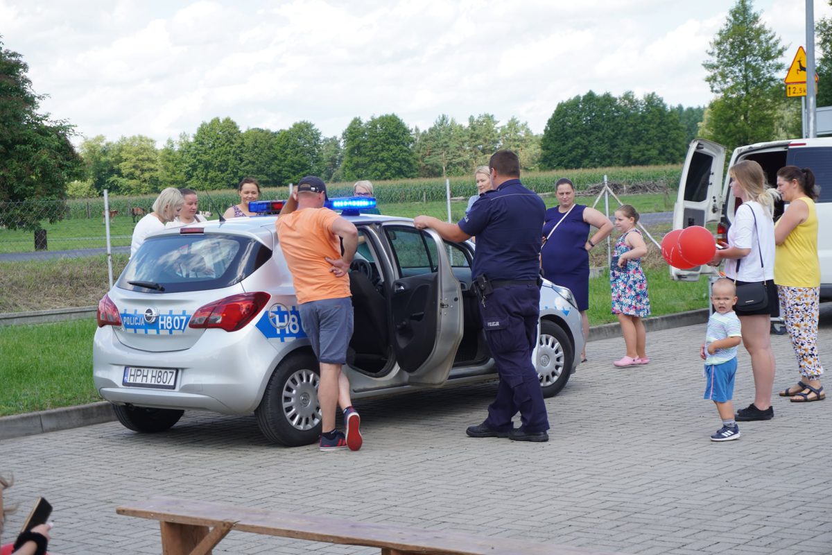 Były również rozdawane atrakcyjne gadżety, m.in: workoplecaki, kolorowanki profilaktyczne, piórniki, bransoletki, balony, informatory profilaktyczne. Dzięki uprzejmości Komendanta i dzielnicowych z Komisariatu Policji w Chorzelach, dzieciaki mogły obejrzeć i wsiąść do radiowozu policyjnego.