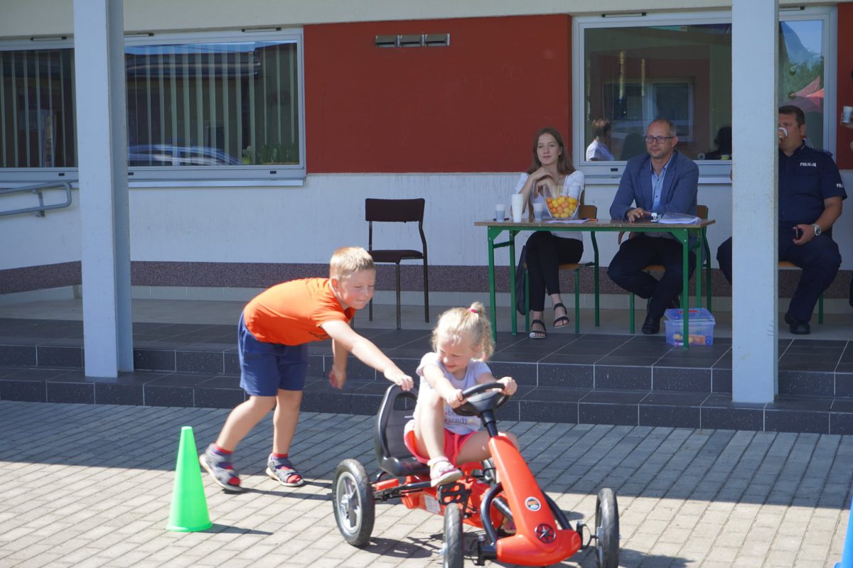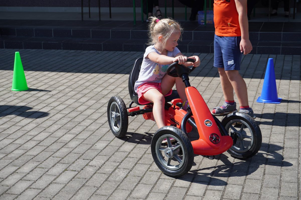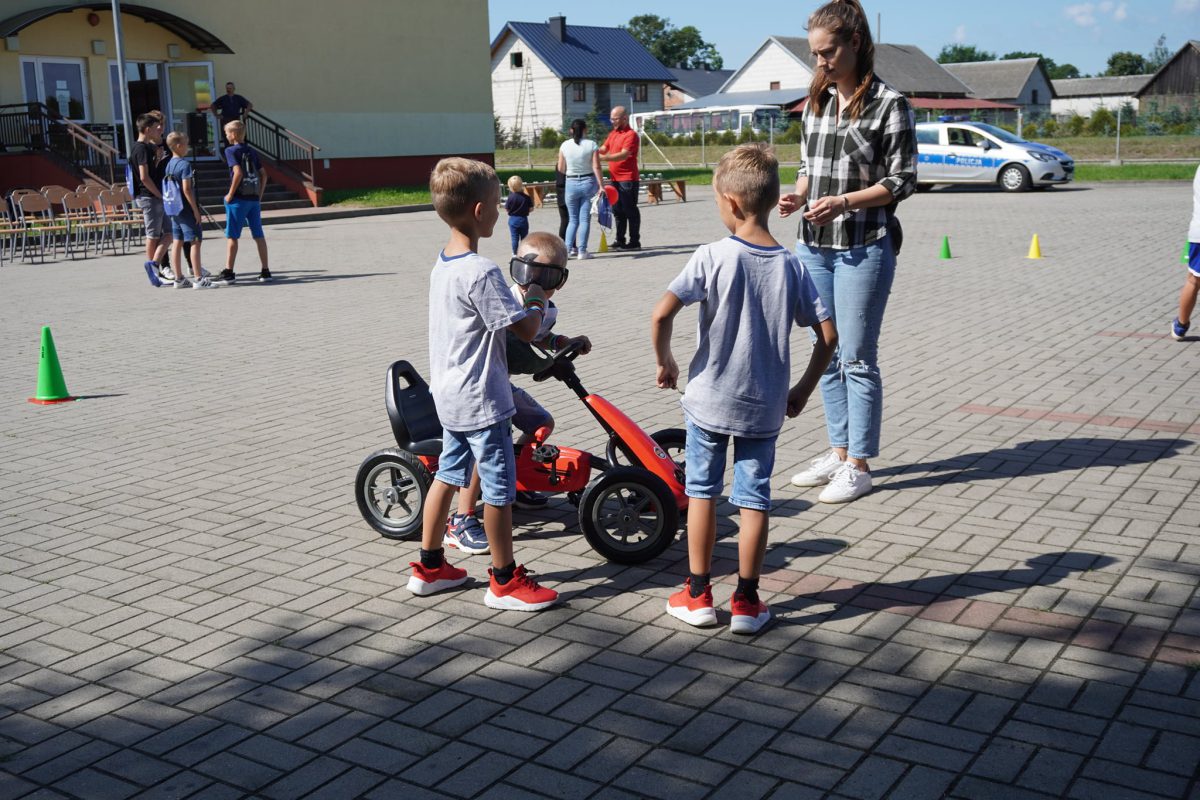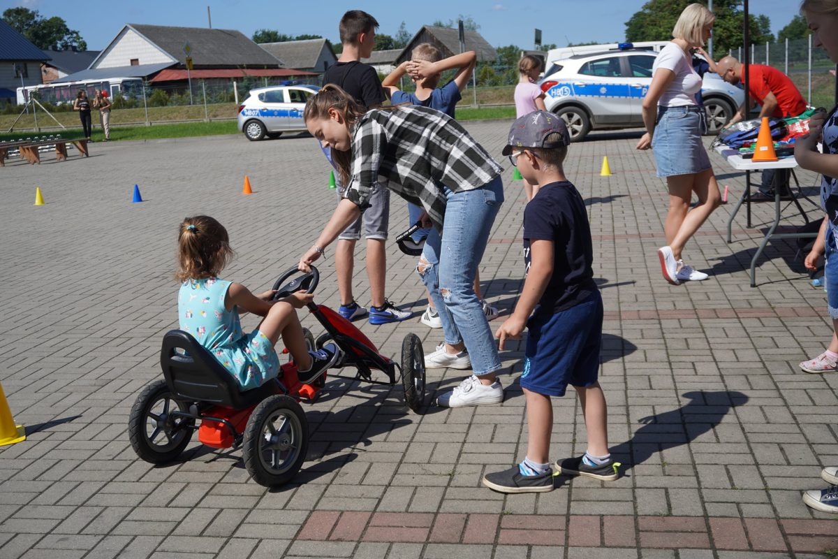 Były również rozdawane atrakcyjne gadżety, m.in: workoplecaki, kolorowanki profilaktyczne, piórniki, bransoletki, balony, informatory profilaktyczne. Dzięki uprzejmości Komendanta i dzielnicowych z Komisariatu Policji w Chorzelach, dzieciaki mogły obejrzeć i wsiąść do radiowozu policyjnego.