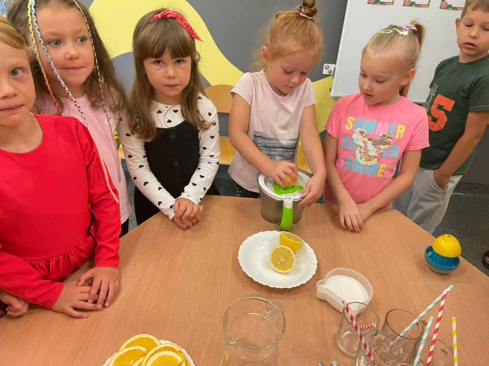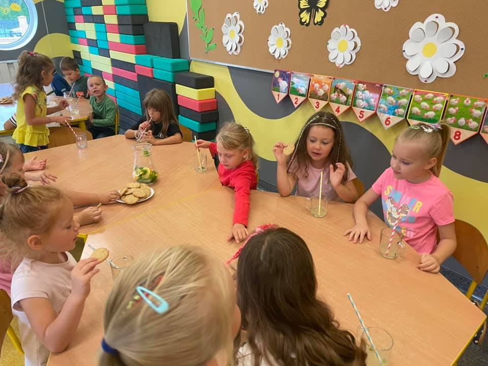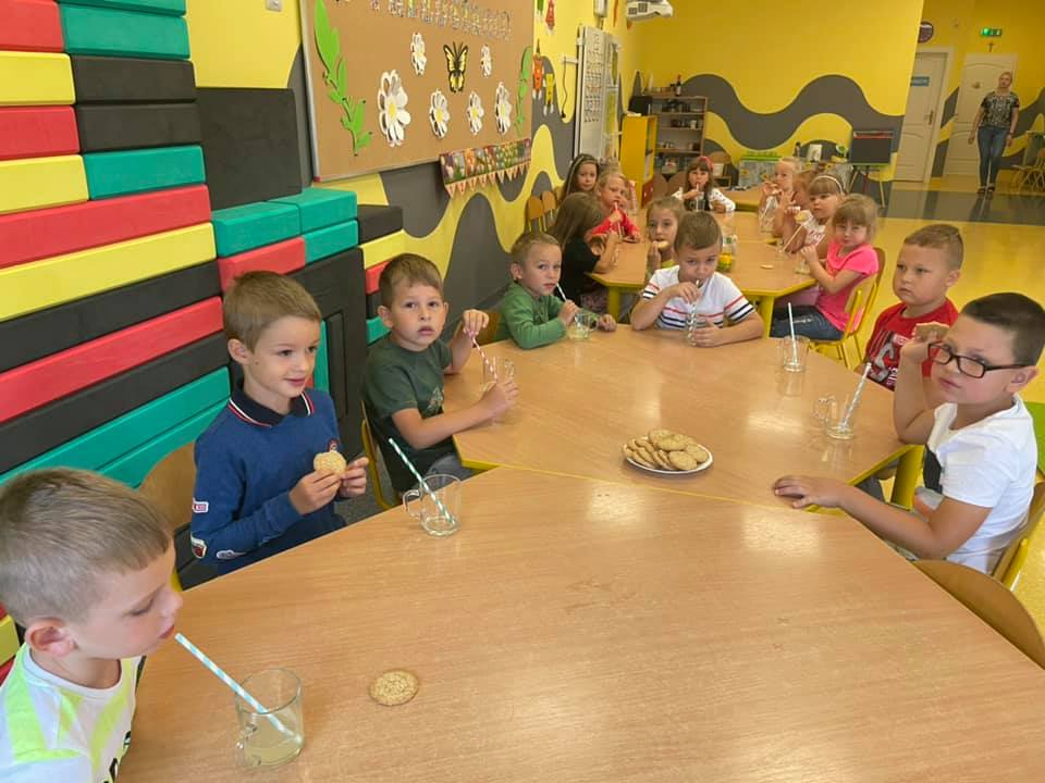 Dzięki takim spotkaniom dzieci mają możliwość poznać przedszkole, zaprzyjaźnić się z innymi dziećmi. Zabawy integracyjne pozwolą na zmniejszenie lęku dziecka wobec placówki, nieznanych w nim osób i pomieszczeń. Jeden z takich dni odbył się 27 sierpnia w grupie Pszczółki. Dzieci odnowiły i nawiązały nowe przyjaźnie. Wspólne zabawy i tańce przełamały nieśmiałość i pozwoliły na uwolnienie dziecięcej ekspresji. Pszczółki przygotowały pyszną i zdrową lemoniadę ze świeżych owoców, którą potem wypiły zajadając się pysznymi ciasteczkami owsianymi z sezamem. Zdrowe odżywianie jest w przedszkolu priorytetem. Następnie dzieci zapoznały się z Hektorem – robotem Photon, który będzie razem z nimi uczył się przez zabawę. Pszczółki były bardzo zadowolone i podekscytowane.