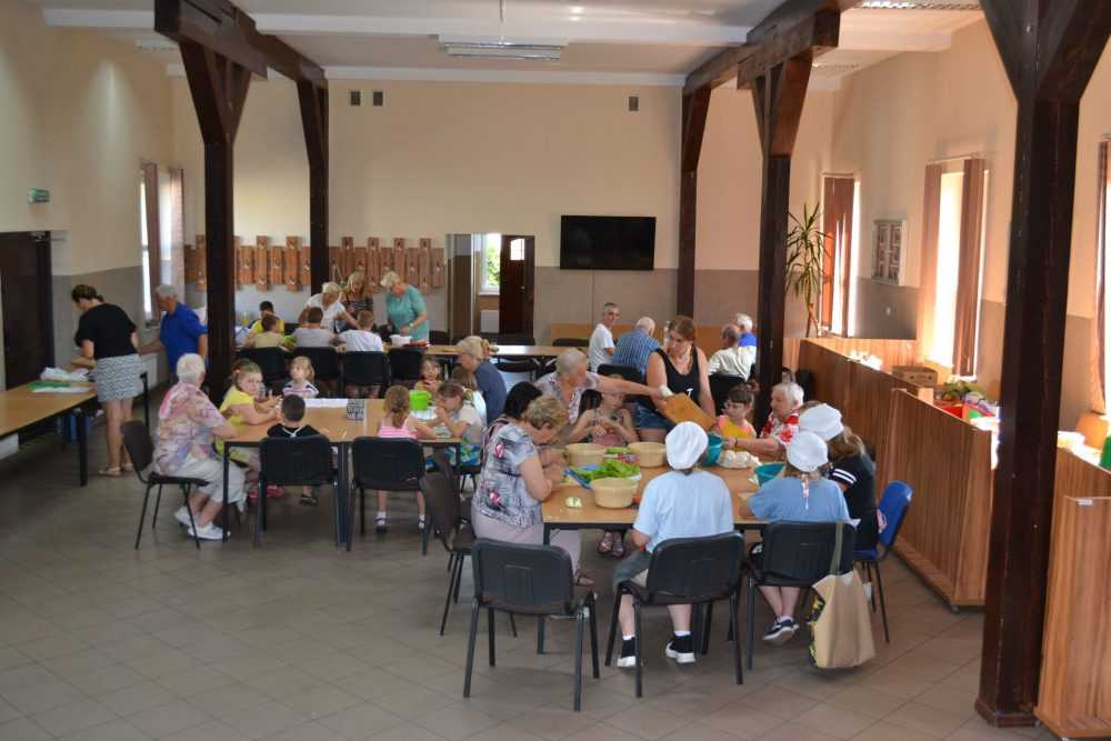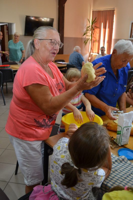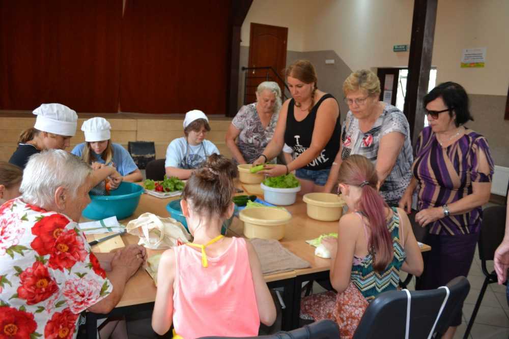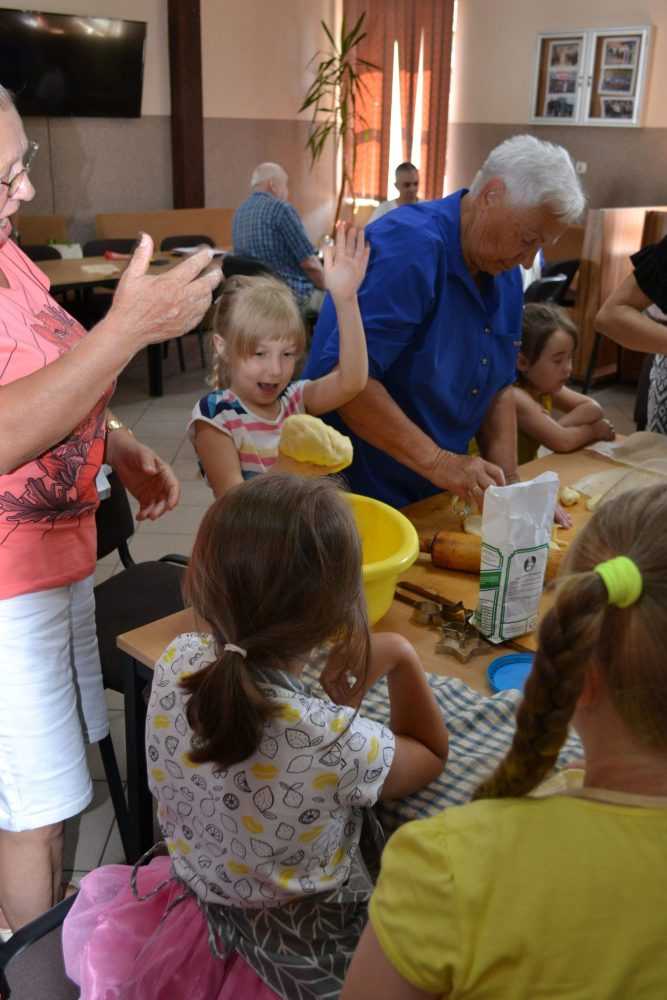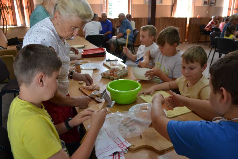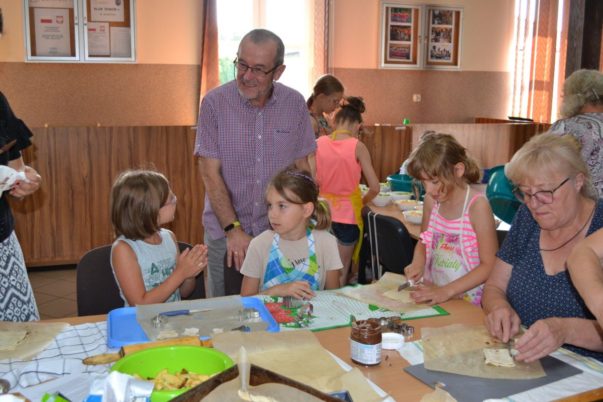 Dnia 22 lipca br. w siedzibie Klubu seniorzy i zaproszenie goście wspólnie przygotowali danie obiadowe i przepyszne ciasteczka. Podczas tego spotkania nasi milusińscy poznali tajemnice wypiekania przepysznych ciasteczek. Zaproszeni goście wspólnie z seniorami mieszali, ugniatali, dekorowali, doprawiali, smażyli i oczywiście zajadali wspólnie przygotowane smakołyki! Wzajemnie spędzony czas przyniósł uczestnikom wiele radości i uśmiechu, no i mamy nadzieję, że zachęcił młodzież do rozwijania umiejętności kulinarnych.