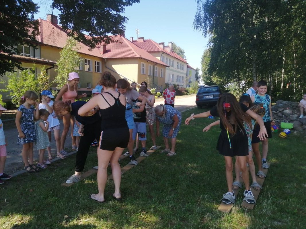 Kolejne spotkanie miało miejsce dnia 5 sierpnia na terenie Szkoły Podstawowej w Bogatem. Dzięki uprzejmości dyrekcji zarówno seniorzy jak i dzieci spędziły bardzo przyjemnie czas znajdując się w „zaczarowanym świecie zabaw” . Każdy lubi się bawić, niezależnie od tego, czy ma 5-10-15, czy też 65 lat. Zarówno młodzi jak i ci starsi chętnie brali udział w konkurencjach, bawiąc się przy tym wspaniale. Był też czas na wzajemną wymianę doświadczeń co do zabaw i gier dawniej i dziś. Kiedyś zabawa łączyła się z aktywnością i integracją zazwyczaj poza domem, dziś raczej wolny czas spędza się w domu. Wspólnie spędzony czas zaowocował poprawą nastroju nie tylko u dzieci, bo najważniejsze wtedy było aby junior i senior mogli razem aktywnie spędzić ten piątkowy dzień.