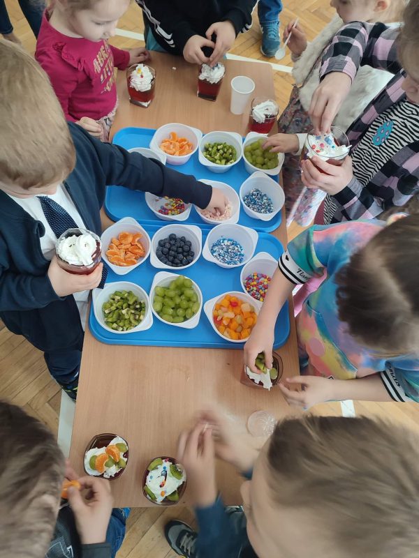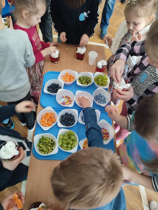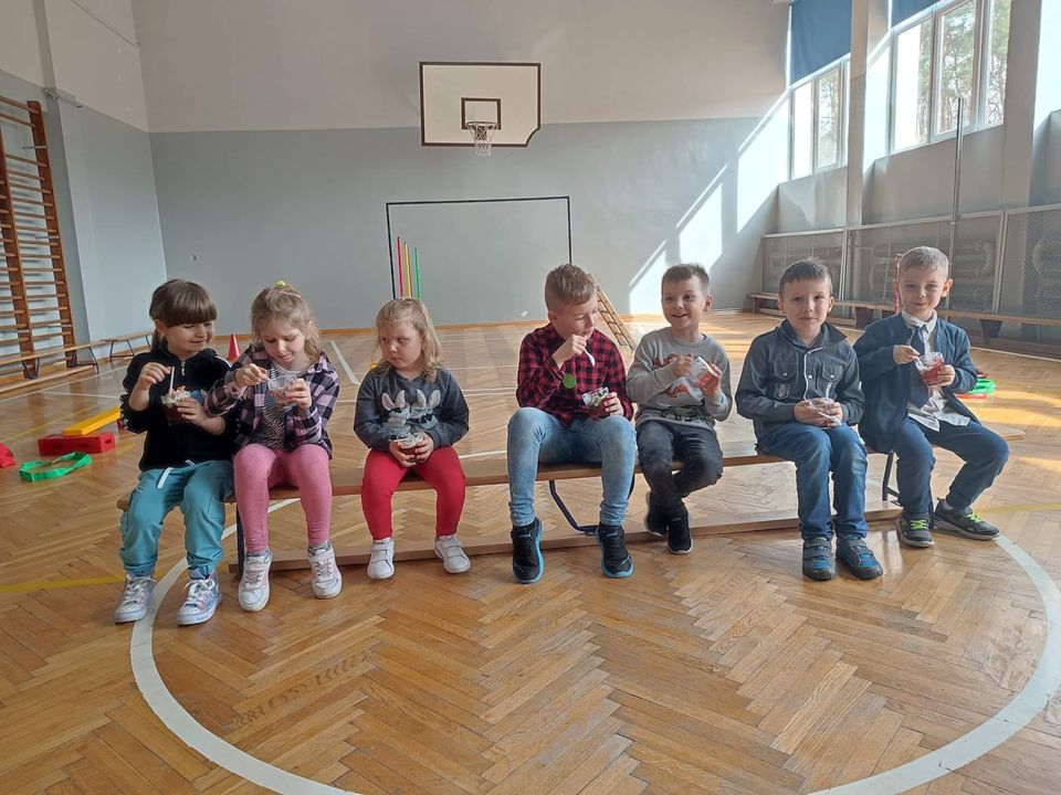 Po wykonaniu prac ogrodniczych w sali gimnastycznej przedszkolaki z wielkim zaangażowaniem pokonywały tor przeszkód. Nie zabrakło słodkiego poczęstunku, zabaw przy muzyce, pamiątkowych zdjęć i przede wszystkim uśmiechów dzieci.