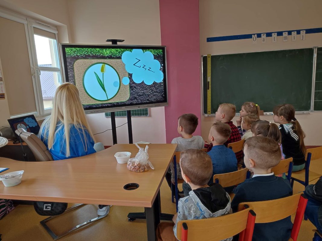 7 kwietnia w Szkole Podstawowej w Nowej Krępie gościliśmy przyszłych pierwszoklasistów wraz z rodzicami. Dzieci w sali dydaktycznej uczestniczyły w zajęciach pod hasłem: „Wiosenne przebudzenie” , poznały historię żółtego tulipana, a także bawiły się w ogrodników, siejąc owies i sadząc cebulki.