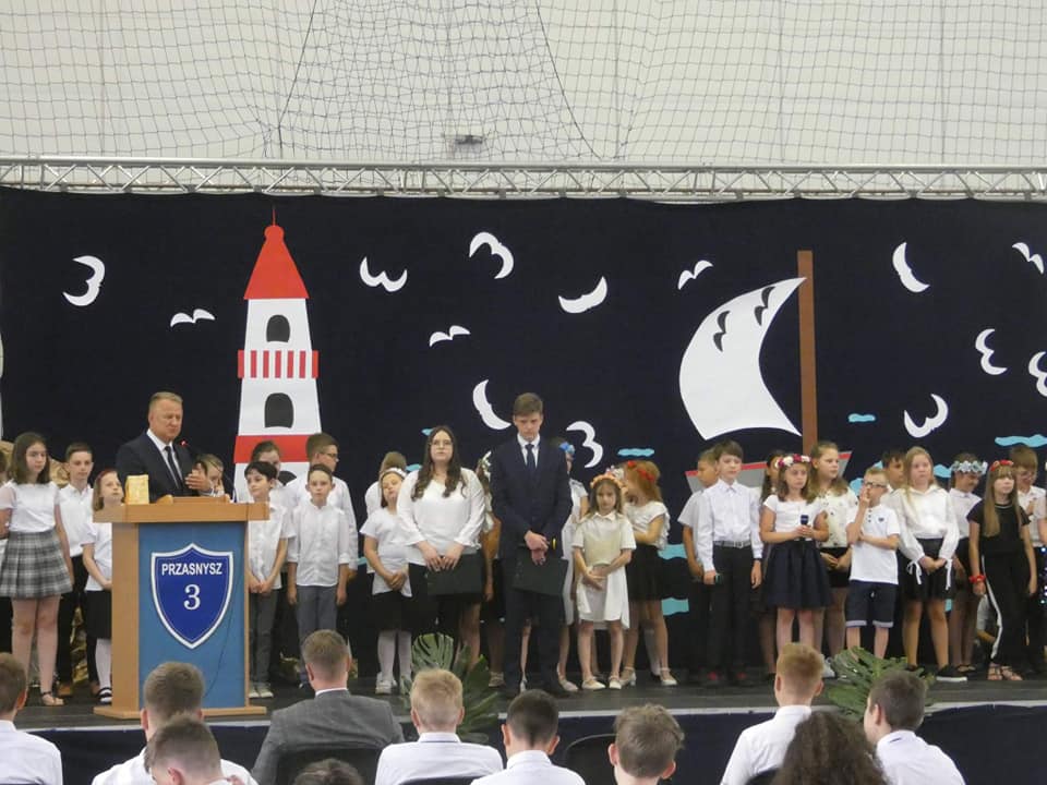 Na zakończeniu roku obecni byli również: Zastępca Burmistrza Miasta Przasnysz – Łukasz Machałowski, Wiceprzewodniczący Rady Miasta Przasnysz – Piotr Jeronim, Prezes zarządu oddziału powiatowego ZNP w Przasnyszu – Mirosław Głażewski, Przewodnicząca Rady Rodziców przy Szkole Podstawowej nr 3 w Przasnyszu – Magdalena Zawadzka.