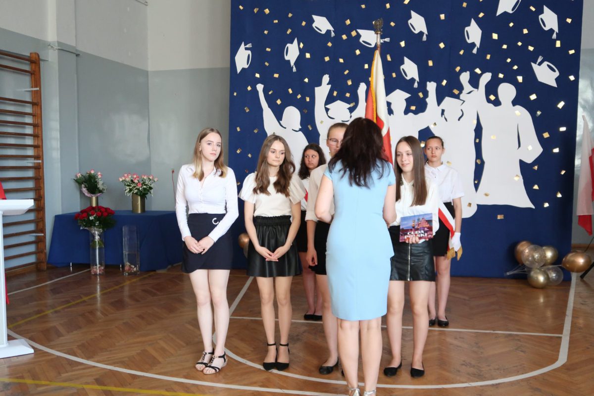 Absolwenci szkoły pożegnali się wzruszającymi podziękowaniami oraz zabarwioną humorem częścią artystyczną. Nie obyło się bez łez z powodu rozstania. Z nostalgią wspominali bal ósmoklasistów oraz ceremonię posadzenie drzewka w Alei Absolwentów.
